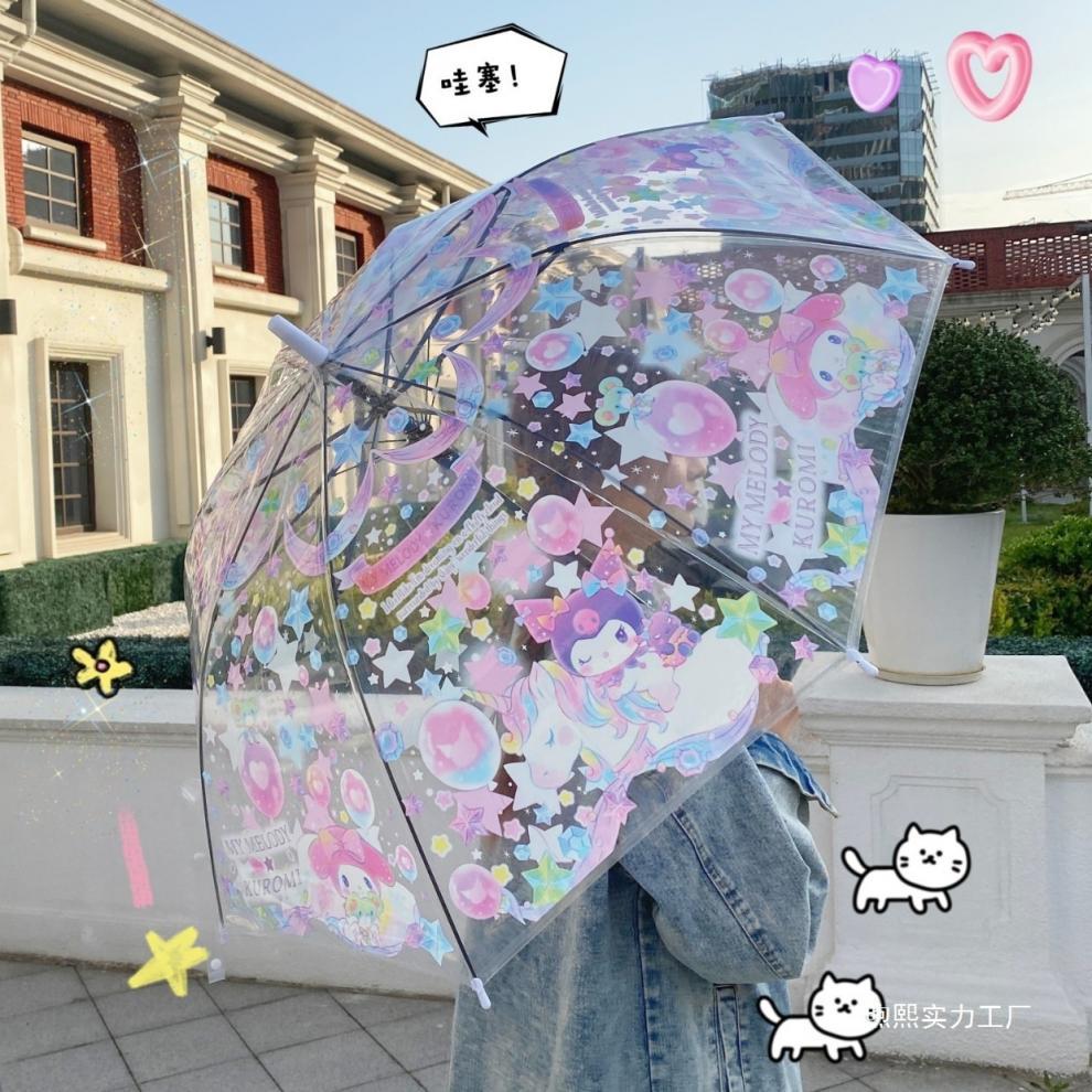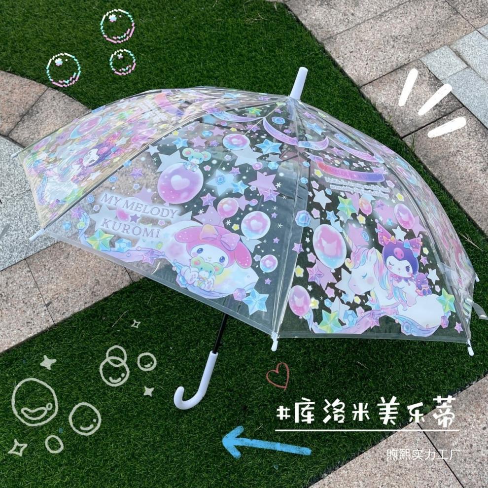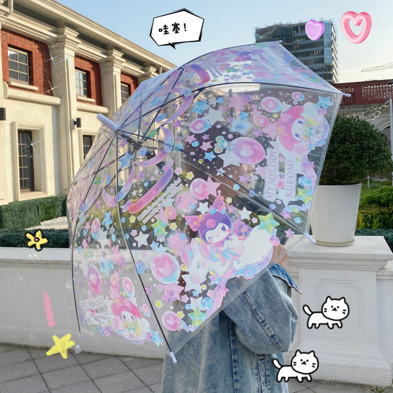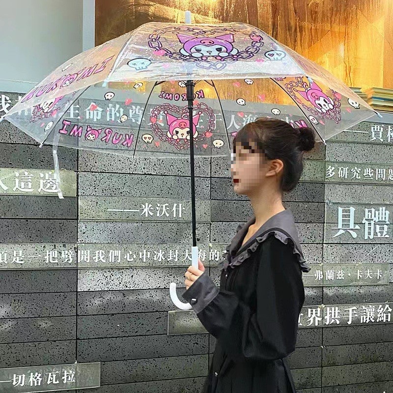 쿠로미 어린이 우산 여아 투명 긴 손잡이 고급 초등학생 자동 우산 원클릭 풀 수납
