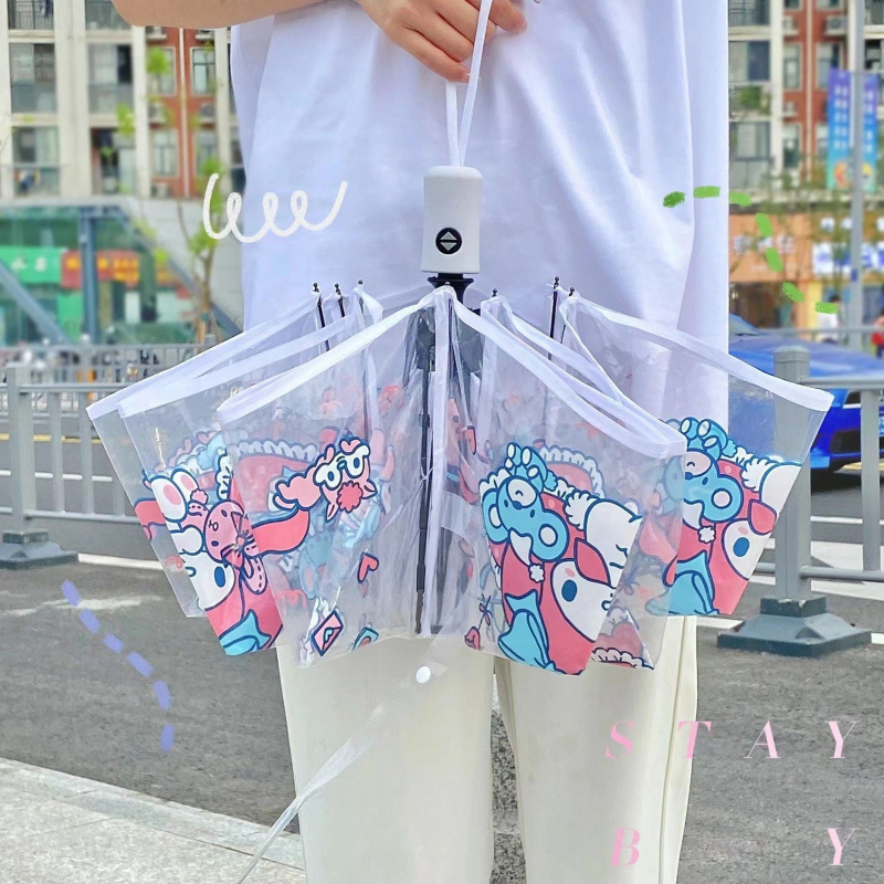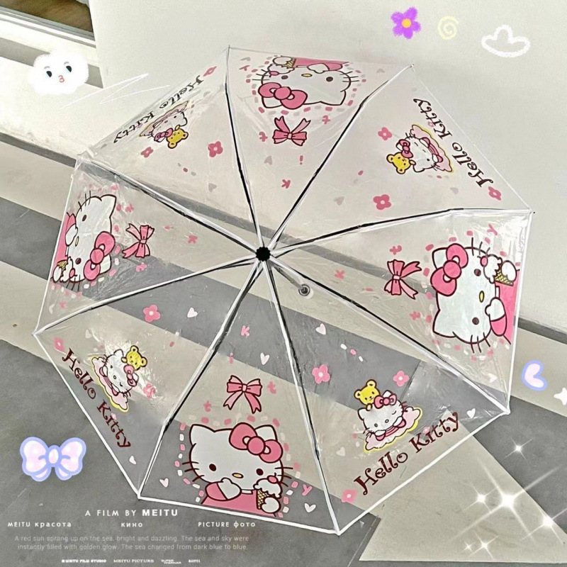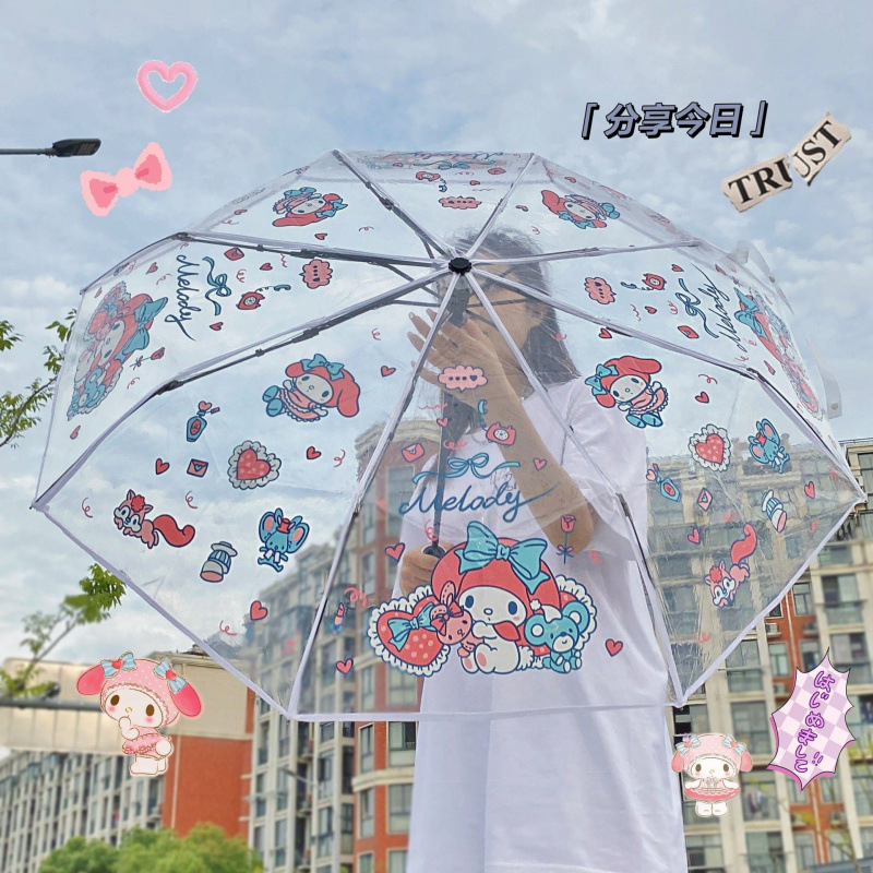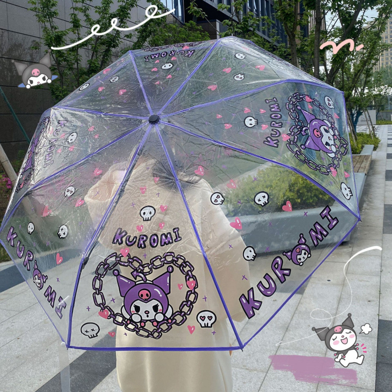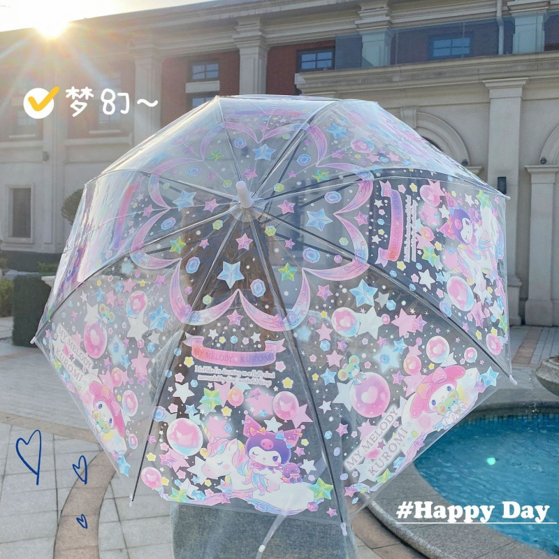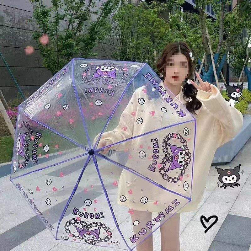 쿠로미 어린이 우산 여아 투명 긴 손잡이 고급 초등학생 자동 우산 원클릭 풀 수납