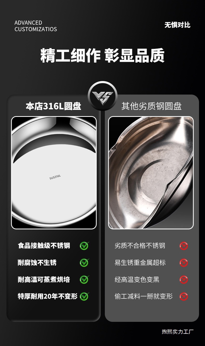 스테인레스 스틸 접시 316 식품 등급 원형 접시 가정용 평평한 접시 작은 강철 그릇 얕은 접시 304 철 접시 찜 접시스토어 가기