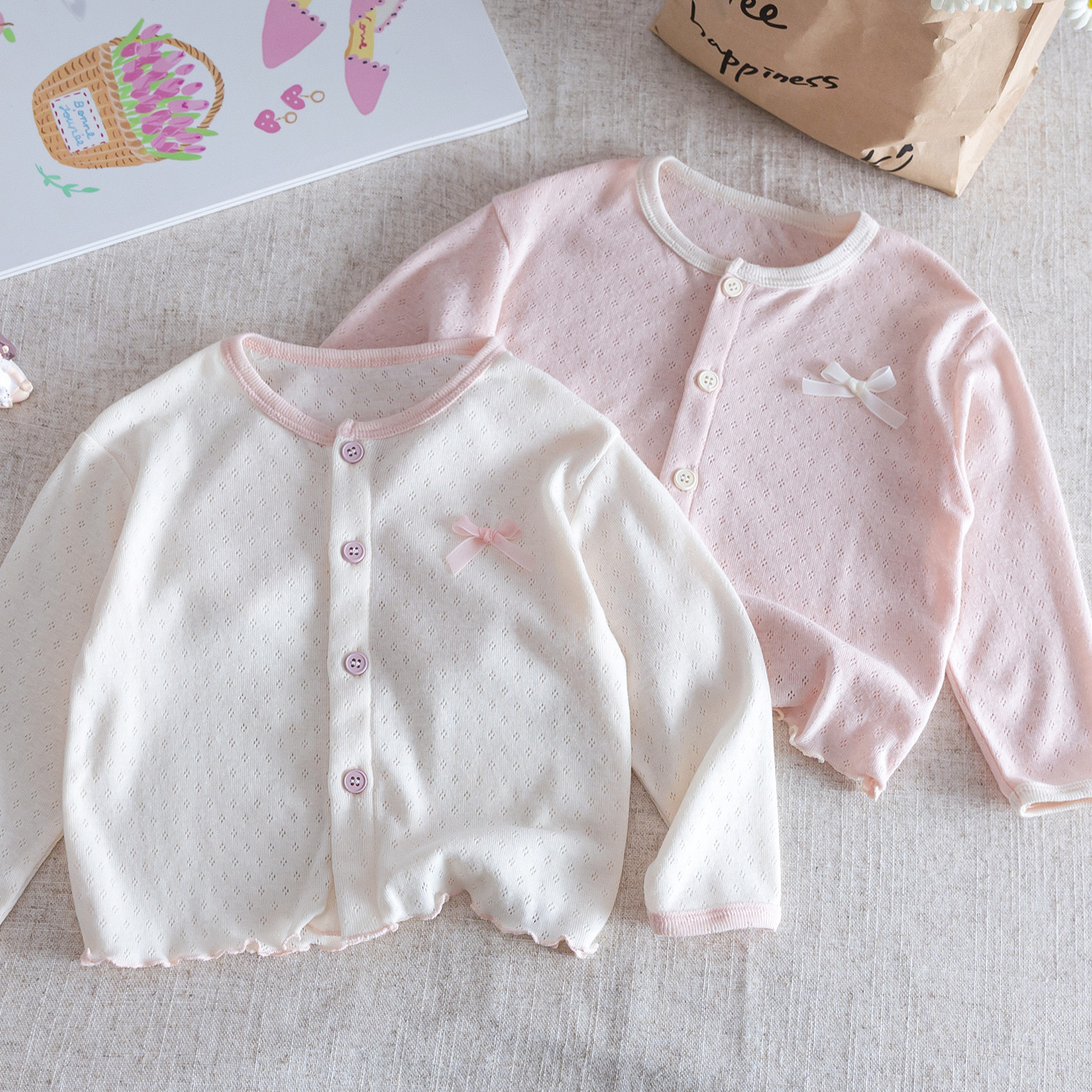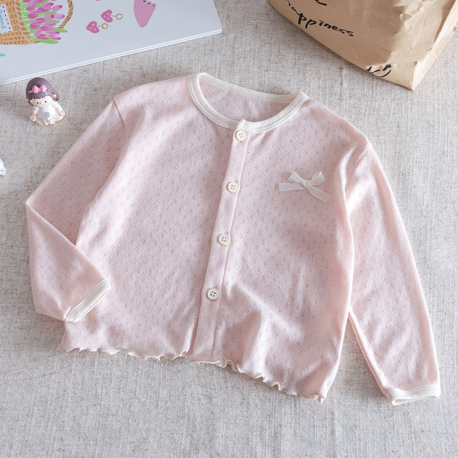 여아 베이비 코트 자외선 차단 한국식 유아 에어컨 셔츠 카디건 피부 친화적인 통기성 코트 자외선 차단 2025 새로운 스타일
