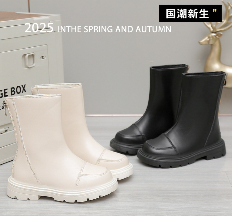 여아 부츠 아동용 짧은 부츠 2025 신작 봄, 가을 가죽 부츠 마틴 부츠 가볍고 부드러운 밑창 검은색 작은 가죽 신발