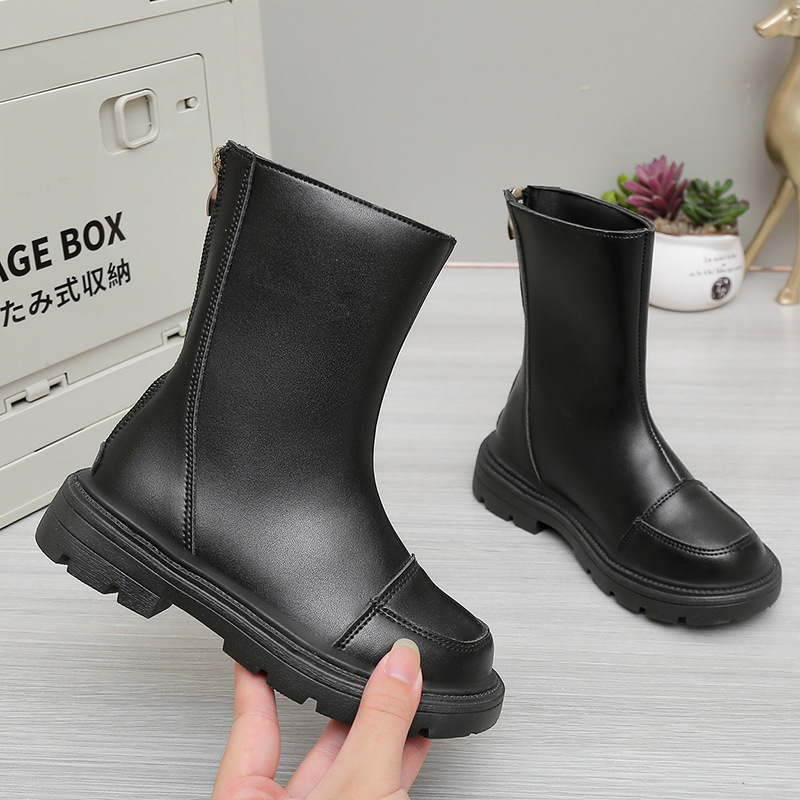 여아 부츠 아동용 짧은 부츠 2025 신작 봄, 가을 가죽 부츠 마틴 부츠 가볍고 부드러운 밑창 검은색 작은 가죽 신발스토어 가기