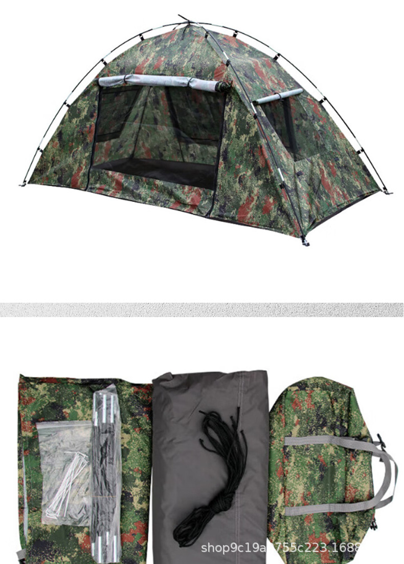야외 캠핑 손으로 짠 단층 두꺼운 이중층 멀티 창 모기 방지, 비 및 바람 방지 초경량 1인 실내 텐트스토어 가기