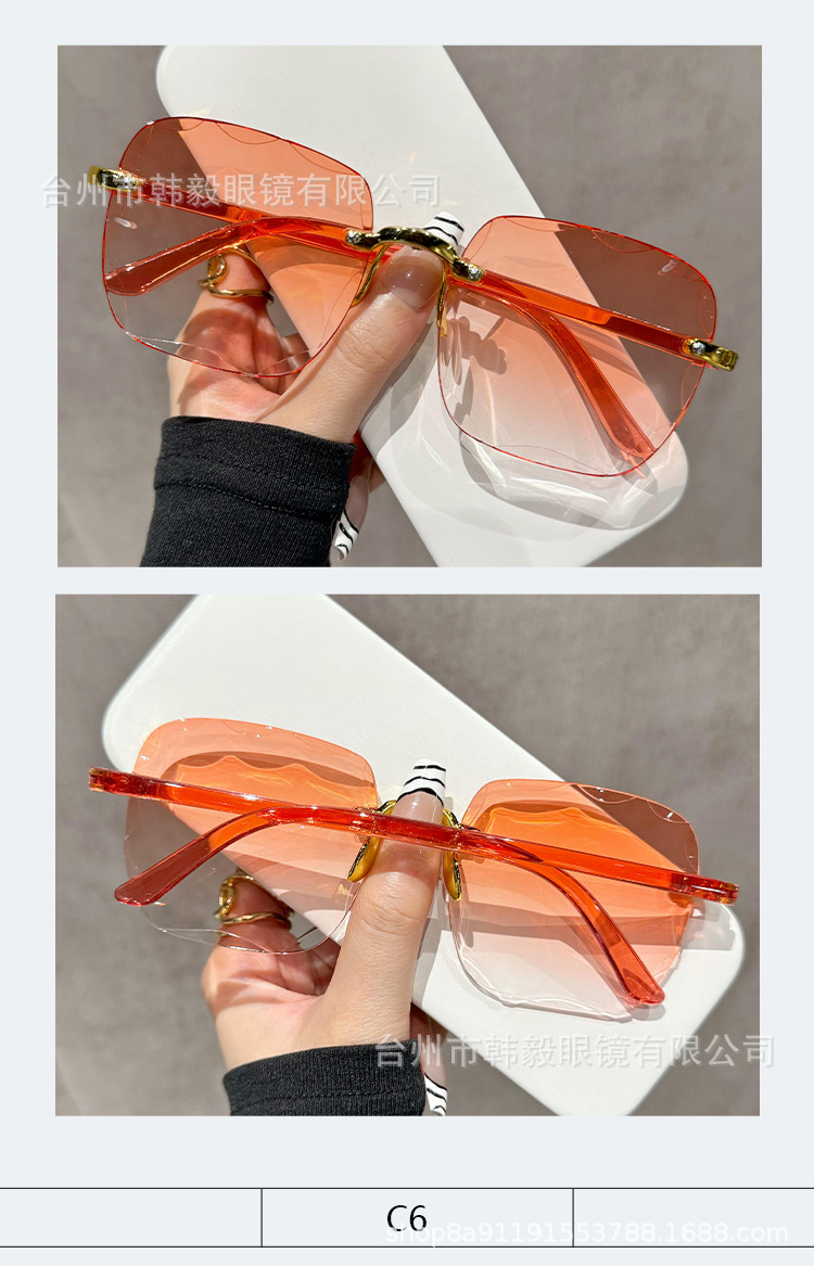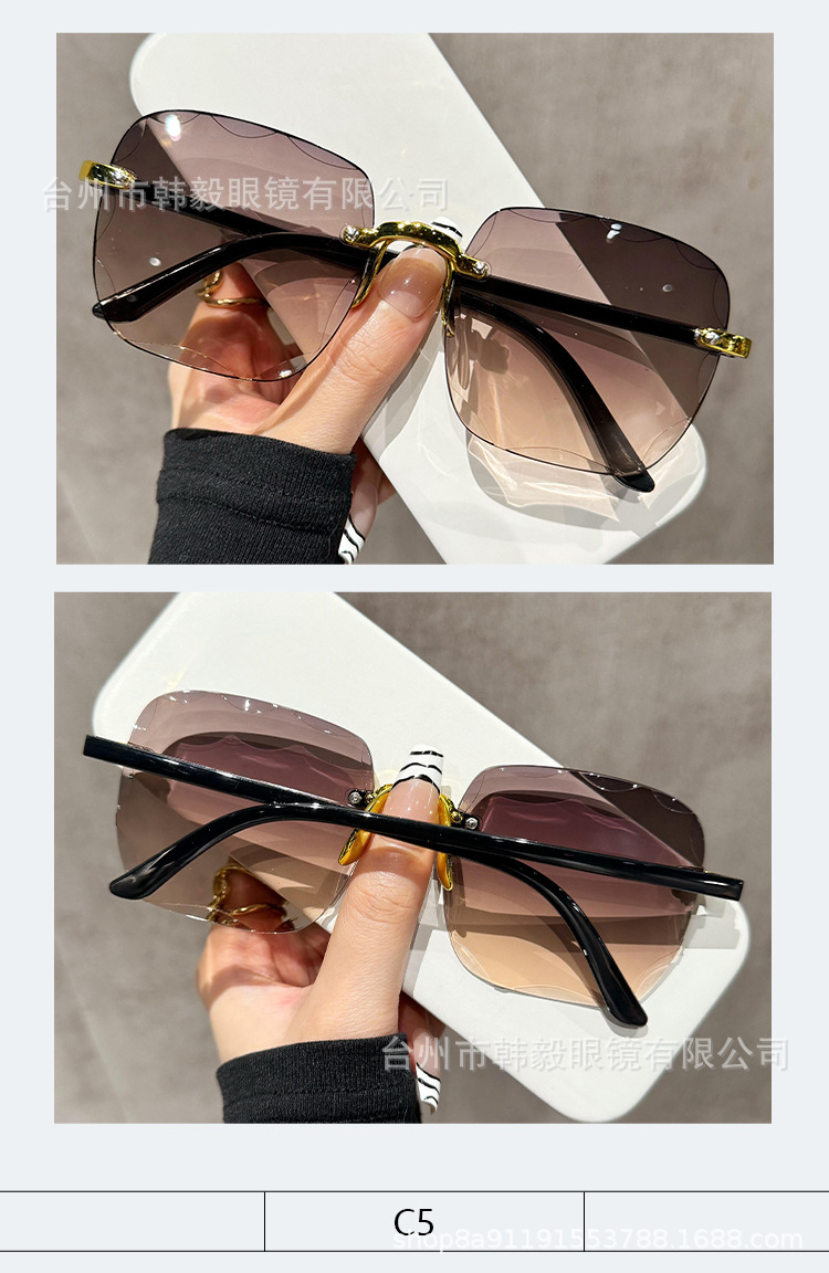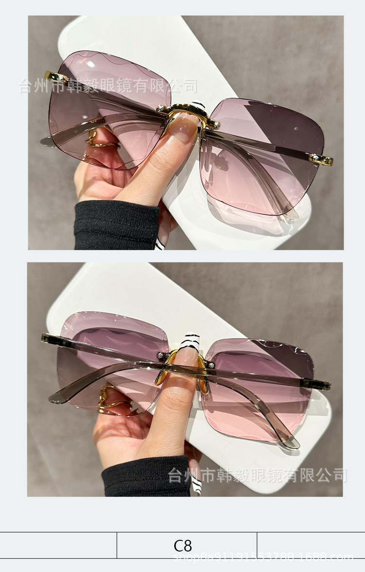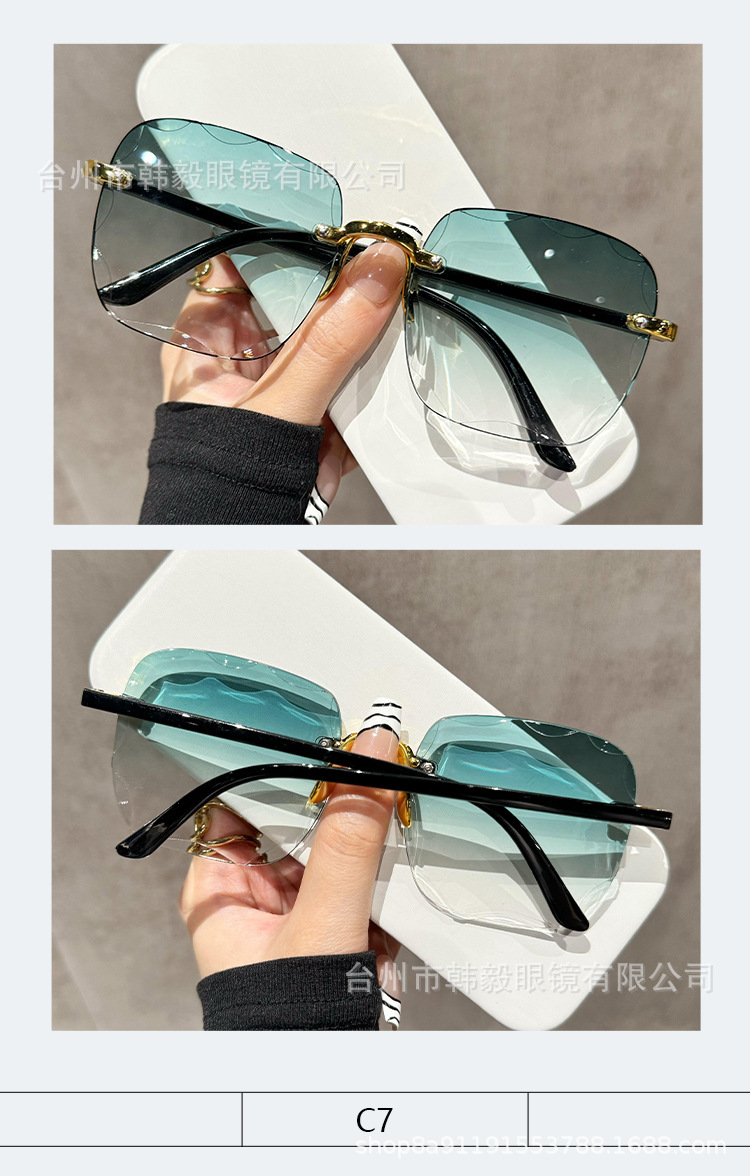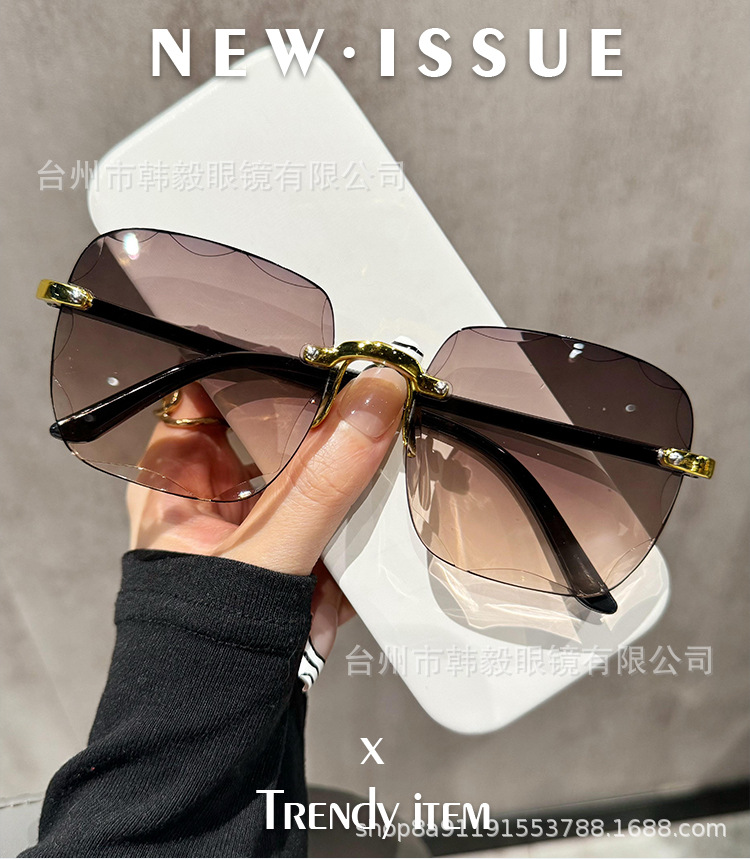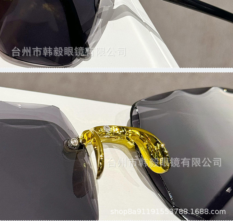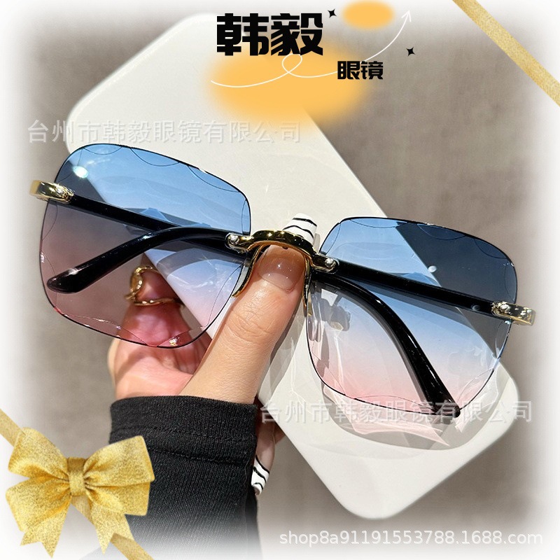 2025 새로운 원피스 드롭 배송 무테 컷 엣지 선글라스 인터넷 연예인 트렌드 여성 한국어 버전 자외선 차단 선글라스