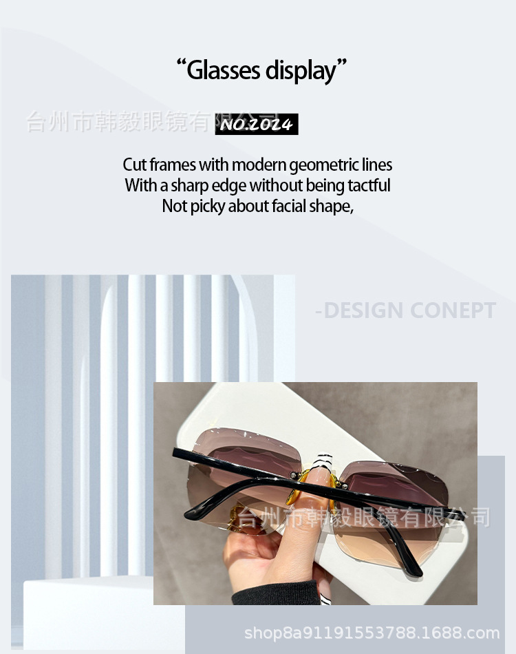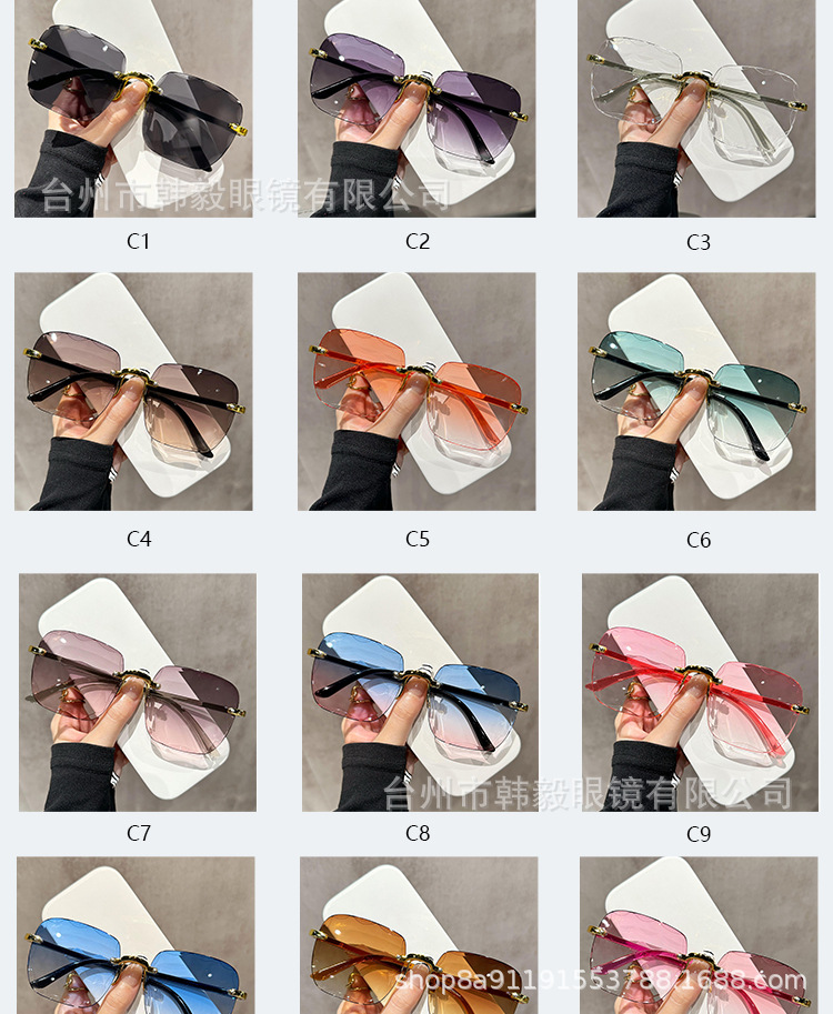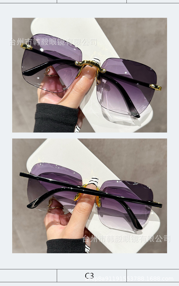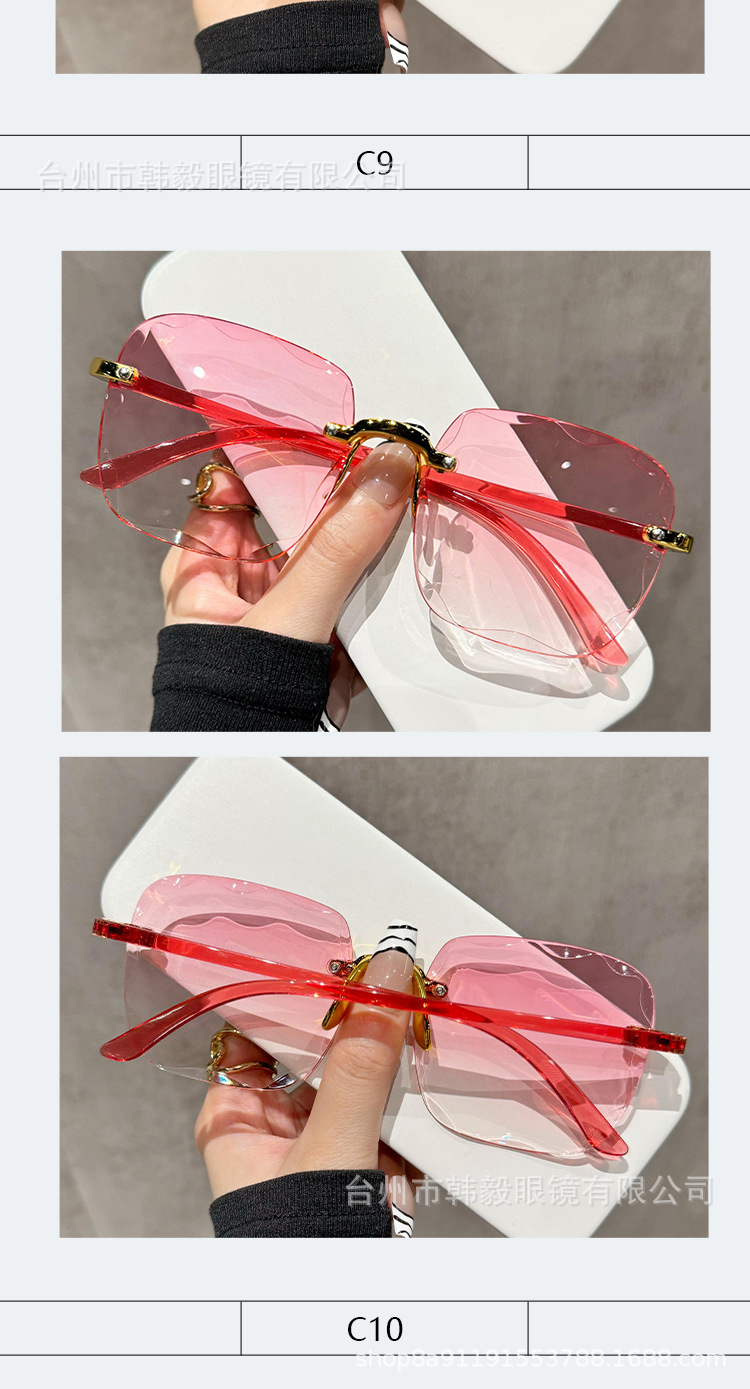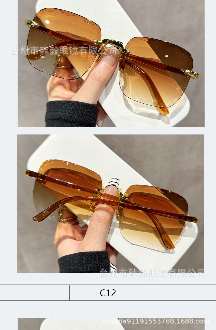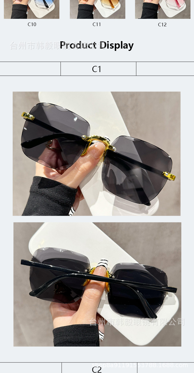 2025 새로운 원피스 드롭 배송 무테 컷 엣지 선글라스 인터넷 연예인 트렌드 여성 한국어 버전 자외선 차단 선글라스