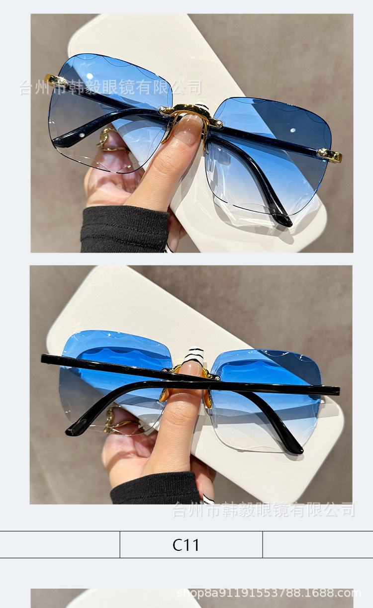 2025 새로운 원피스 드롭 배송 무테 컷 엣지 선글라스 인터넷 연예인 트렌드 여성 한국어 버전 자외선 차단 선글라스스토어 가기