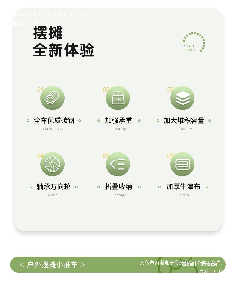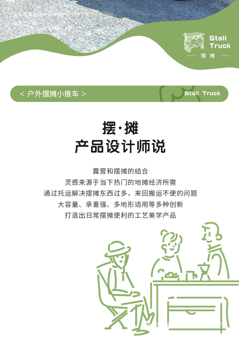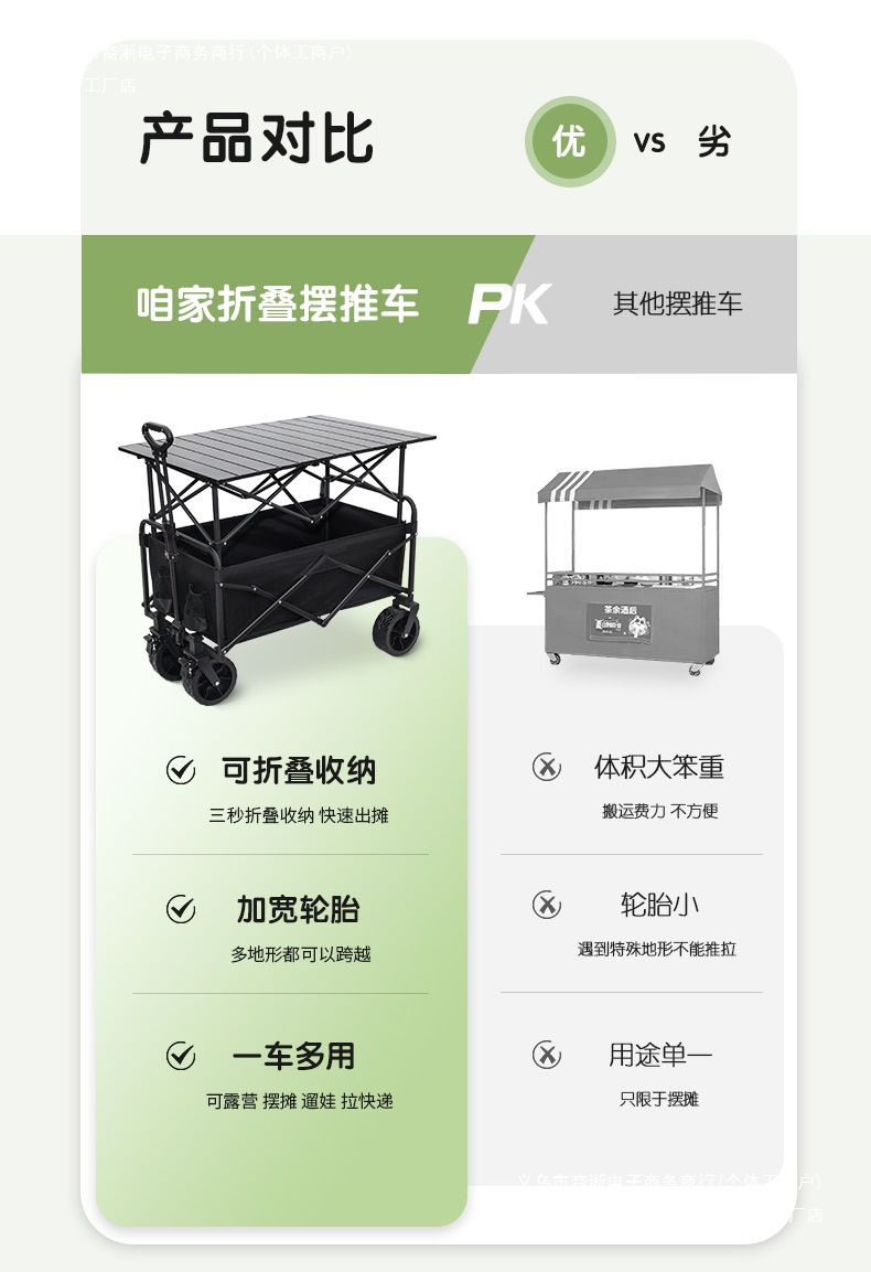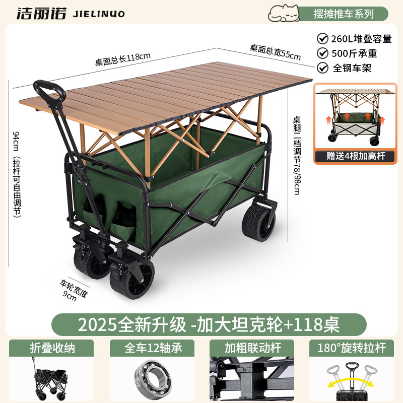 • [다기능 스톨 패키지] 그린 탱크 휠 + 120cm 스톨 접이식 테이블(다리 높이 포함)