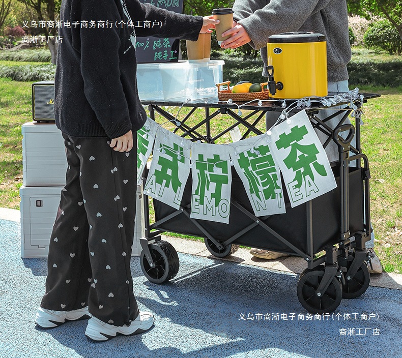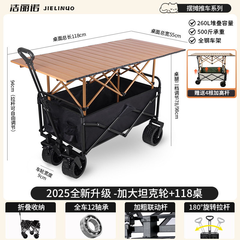 • [다기능 스톨 패키지 + 파라솔] 블랙 탱크 휠 + 120cm 스톨 접이식 테이블(다리 높이 포함)