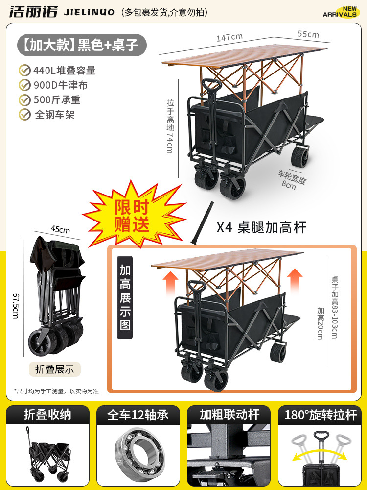 • [다기능 스톨 패키지] 블랙 탱크 휠 + 120cm 스톨 접이식 테이블(다리 높이 포함)