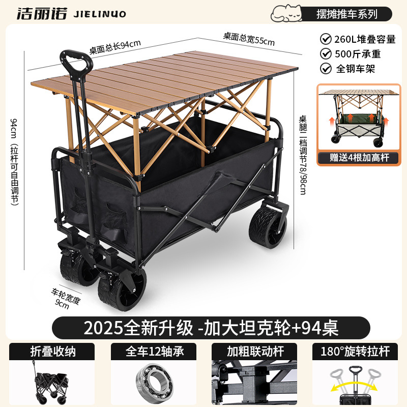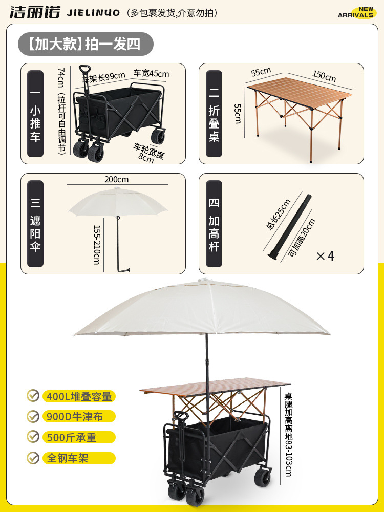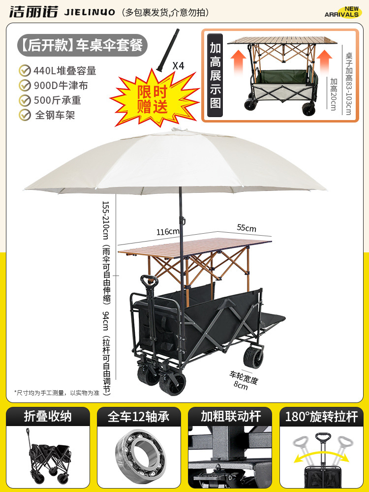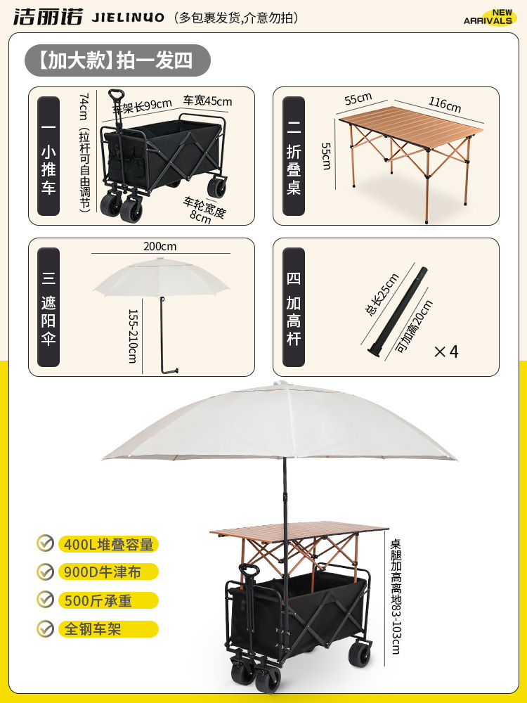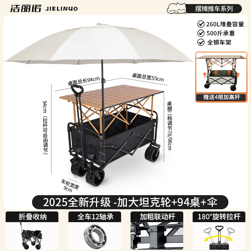 • [다기능 스톨 패키지 + 파라솔] 블랙 탱크 휠 + 94cm 스톨 접이식 테이블 (다리 높이 포함)