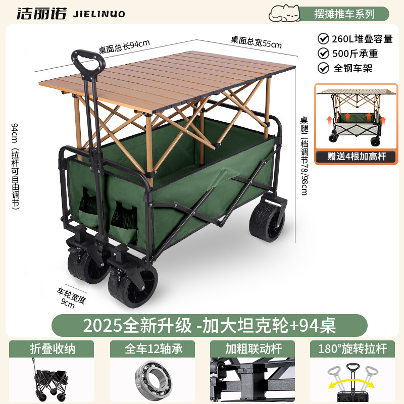 • [다기능 스톨 패키지 + 파라솔] 그린 탱크 휠 + 94cm 스톨 접이식 테이블(다리 높이 포함)