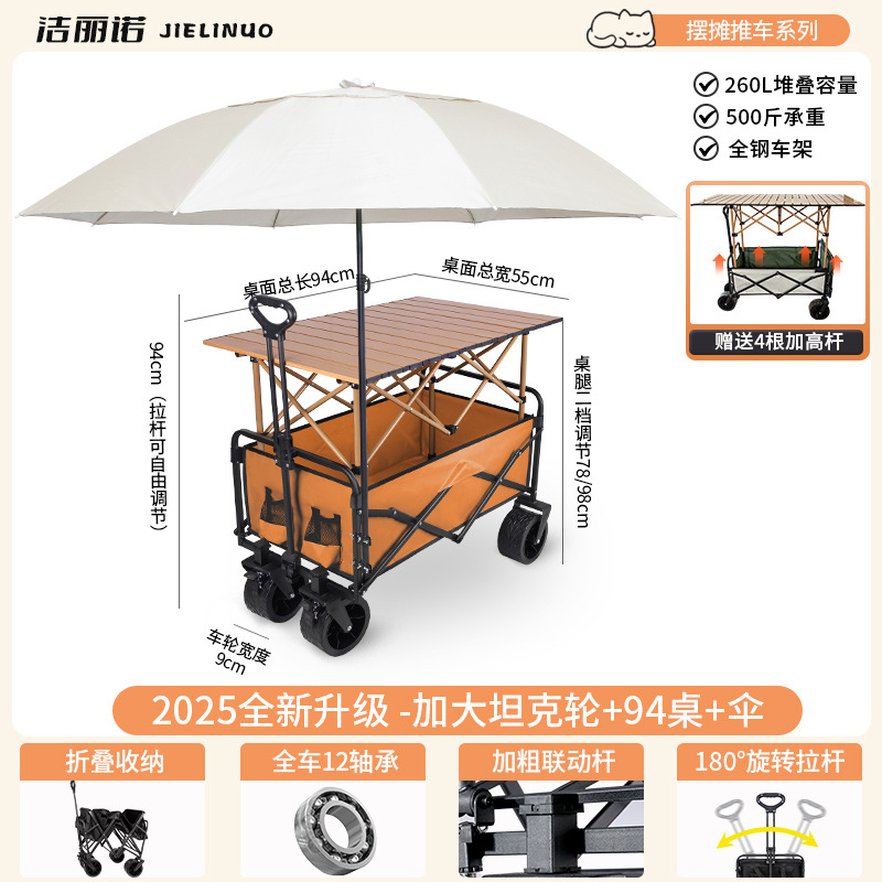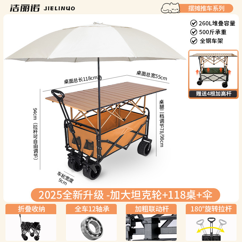 • [다기능 스톨 패키지 + 파라솔] 오렌지 탱크 휠 + 94cm 스톨 접이식 테이블(다리 높이 포함)