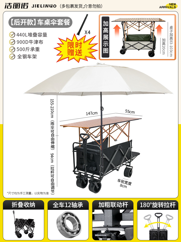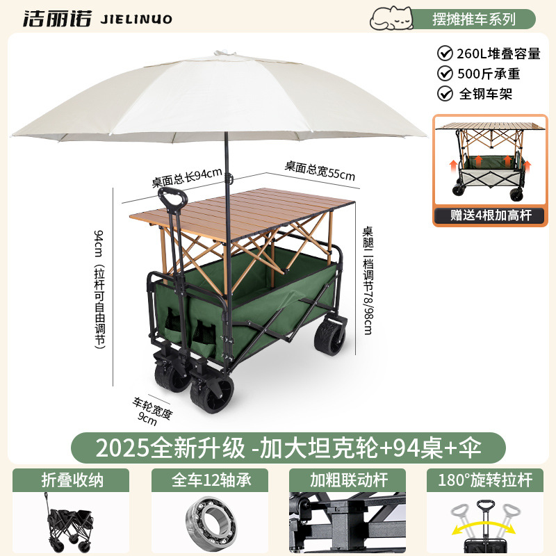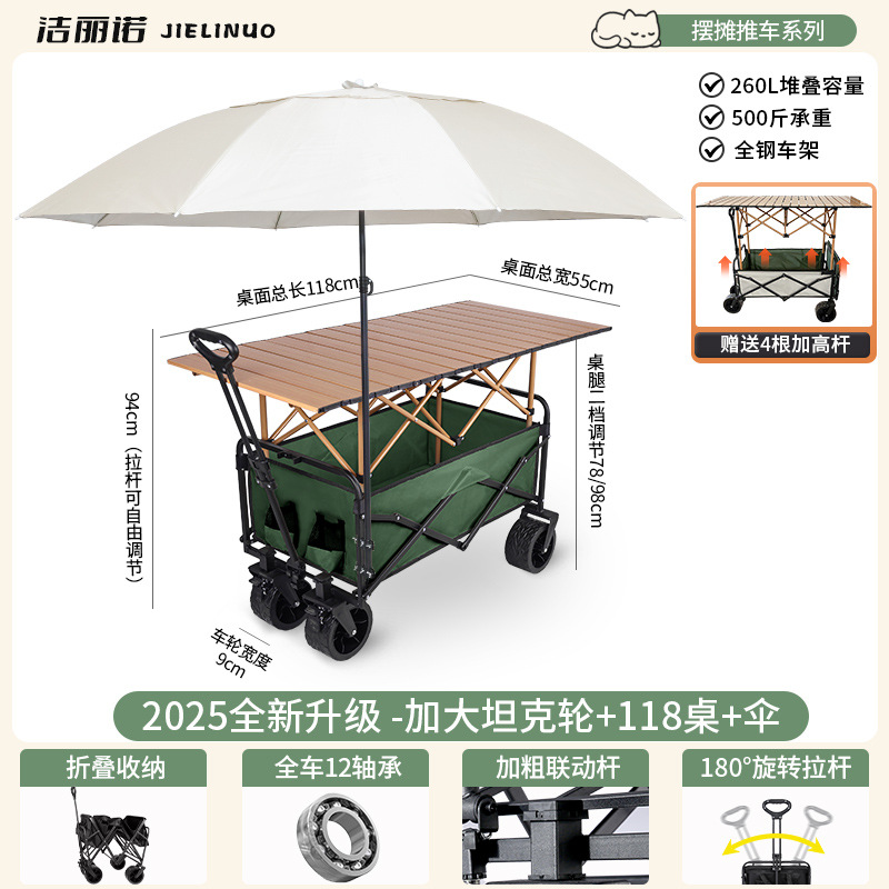 • [다기능 스톨 패키지 + 파라솔] 그린 탱크 휠 + 120cm 스톨 접이식 테이블(다리 높이 포함)
