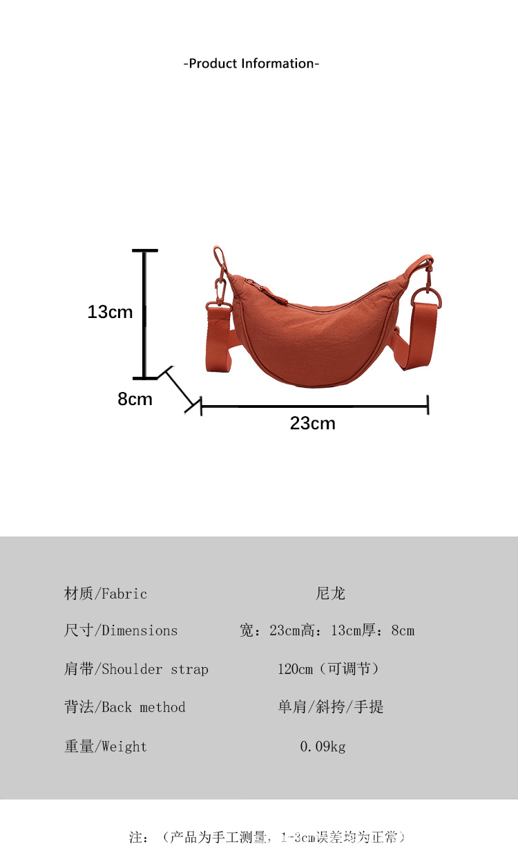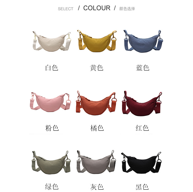 2025 새로운 가방 여성용 어깨 크로스 바디 백 일본 대용량 경량 다목적 나일론 초승달 만두 가방 유행