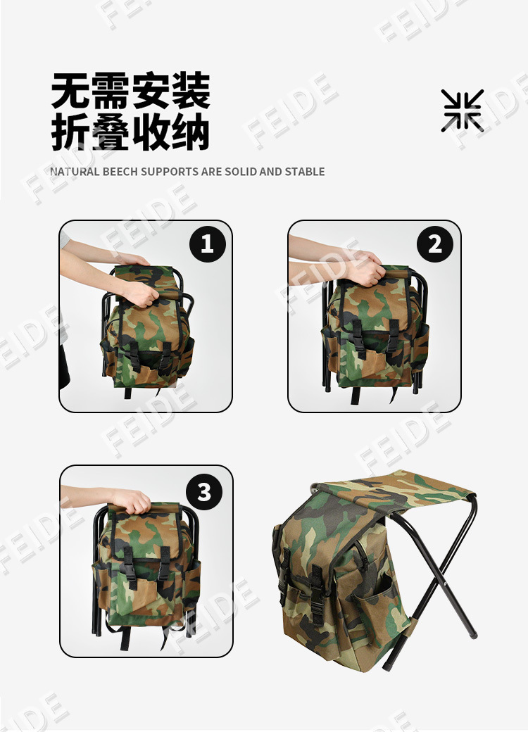 휴대용 가방이 포함된 크로스보더 아마존 야외 접이식 의자, 위장 낚시 의자, 접이식, 편리하고 보관하기 쉬운 등산 배낭스토어 가기
