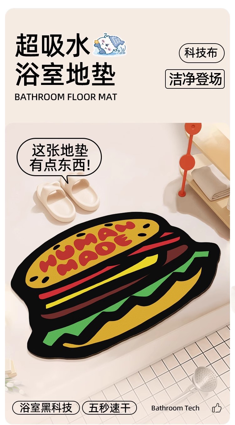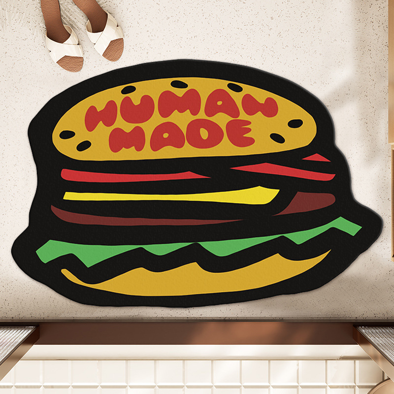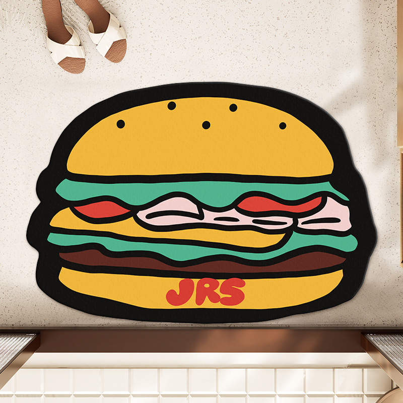 미국 만화 버거 규조토 진흙 바닥 매트 욕실 화장실 미끄럼 방지, 먼지 방지 및 관리하기 쉬운 발 매트 입구 속건 매트스토어 가기