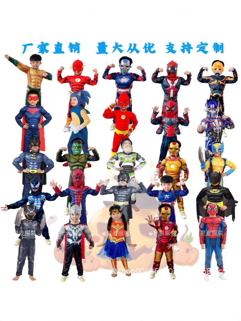大量提供超级英雄系列肌肉型服装和单层系列服装现货出售,万圣节&圣诞节&儿童节&等等儿童成人角色扮演舞台表演服装,动漫COSPLAY服装,复仇者联盟服装,化妆舞会表演派对服饰,儿童T台走秀服装,COS表演服。