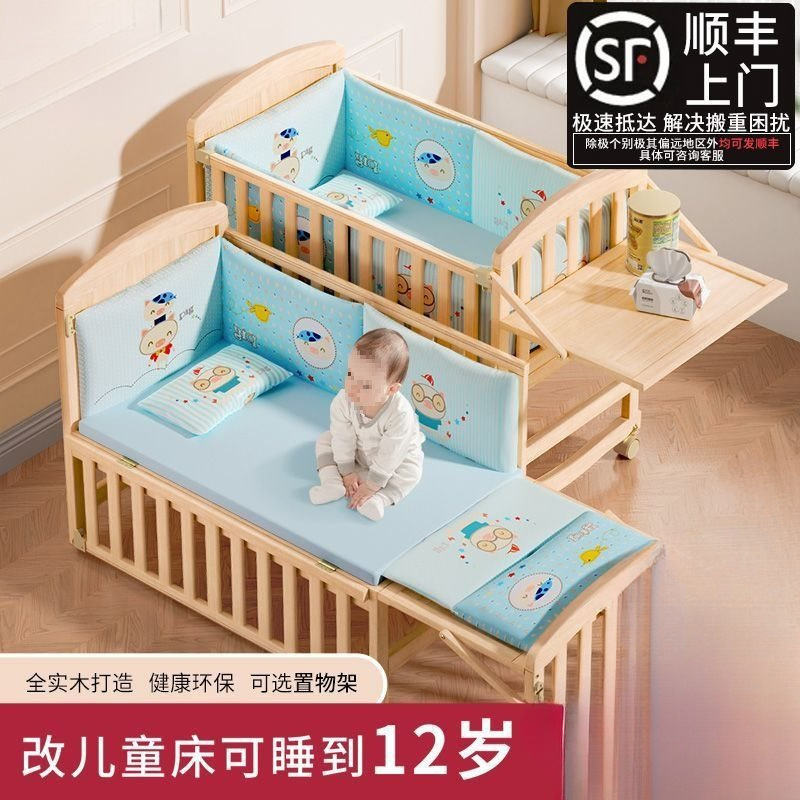 유아용 침대 접합 아기 대형 침대 단단한 나무 페인트가없는 요람 어린이 신생아 아기 어린이 침대 튼튼하고 내구성