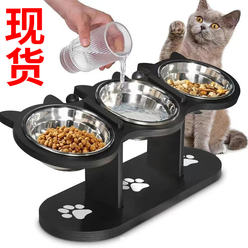 스팟 목재 애완동물 고양이 밥그릇 스탠드, 수직 경사 개 물 마시는 스탠드, 경추 보호 3-in-1 고양이 밥그릇 스탠드