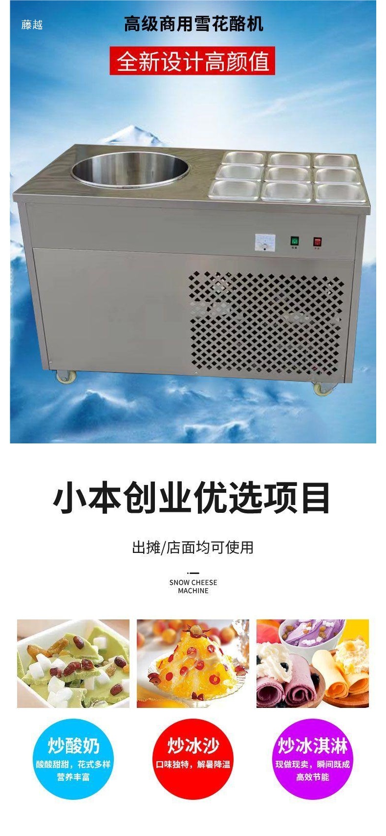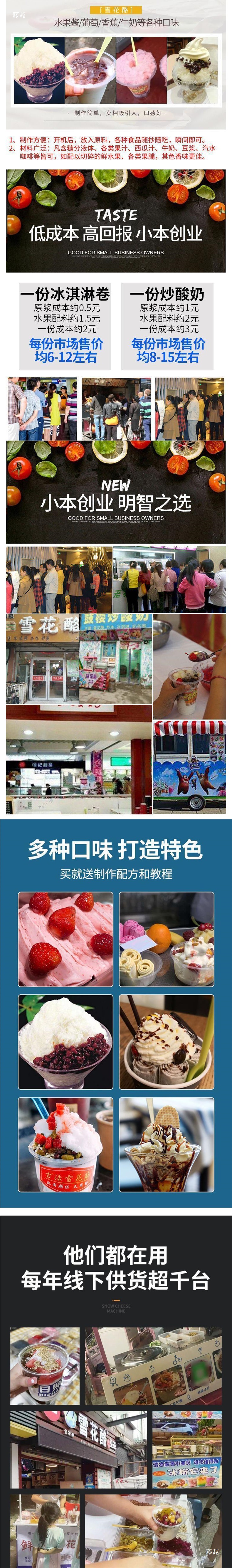눈송이 치즈 기계, 상업용 수제 스낵, 야시장, 튀긴 얼음, 프렌치 아이스크림 기계, 스무디 기계, 치즈 기계, 노점스토어 가기
