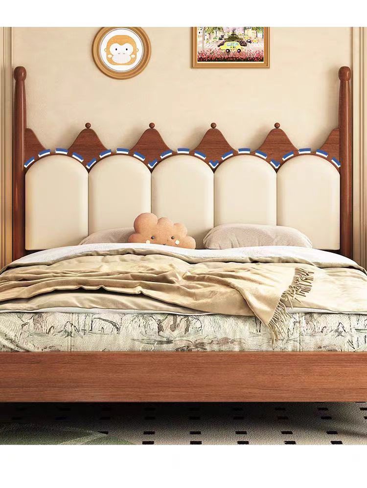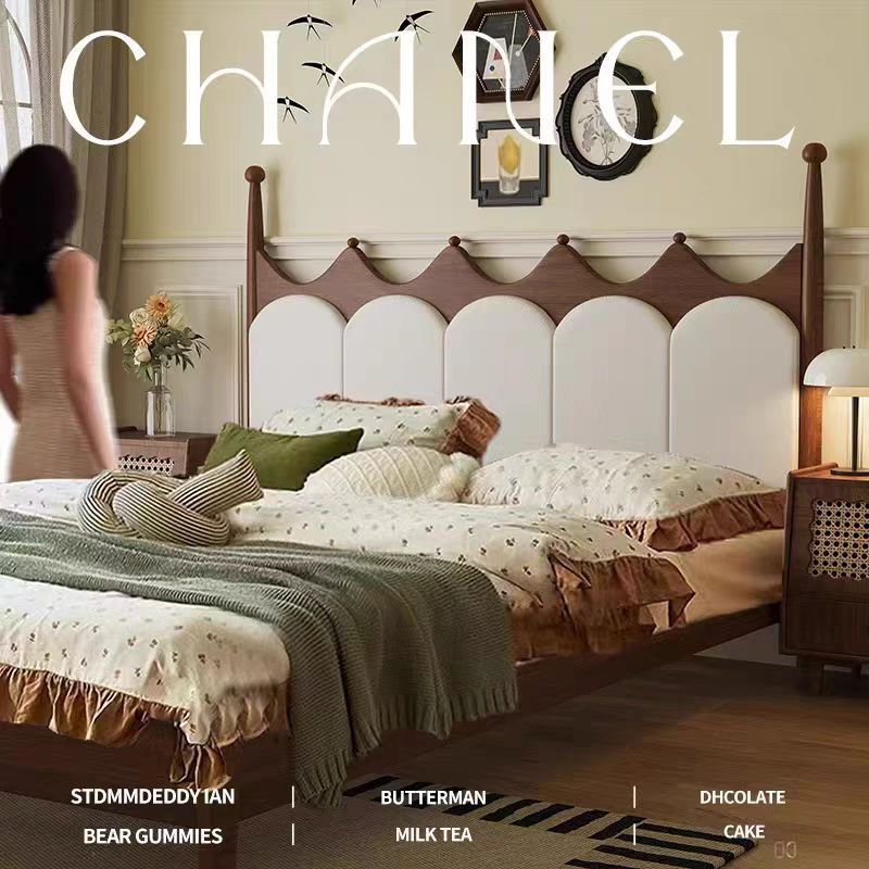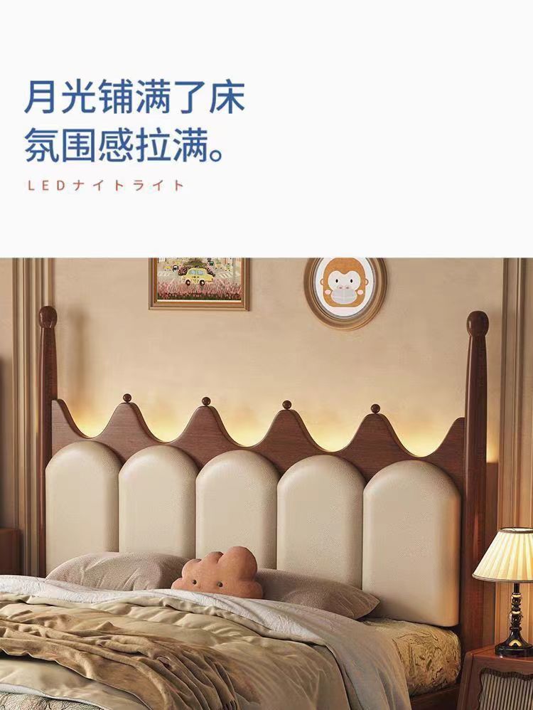 프렌치 레트로 원목 침대 크라운 소형 아파트 1.5m1.8m 더블 소프트 팩 대형 침대 아메리칸 크림 중세 스타일 침대