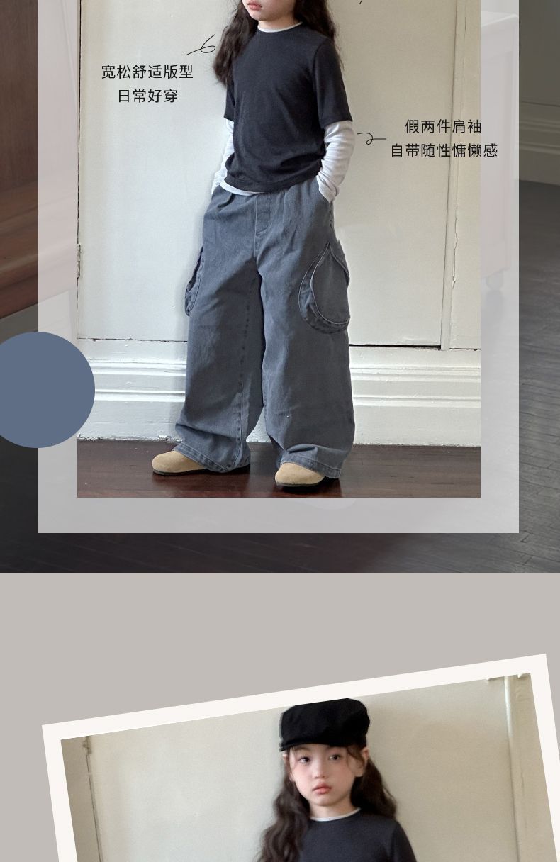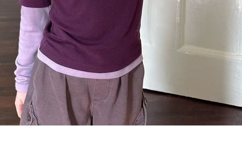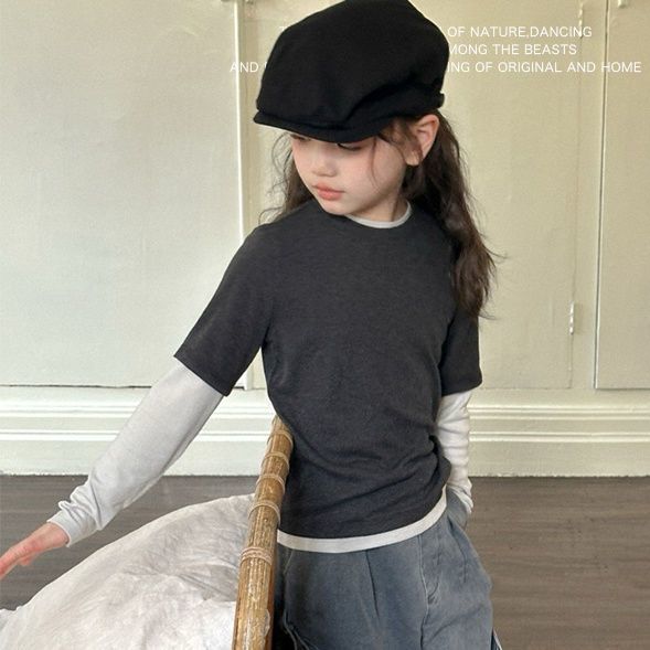여자 2025 봄, 가을 겉옷 가짜 투피스 긴팔 티셔츠 바닥 셔츠 새로운 이른 봄 여자 슬림 탑