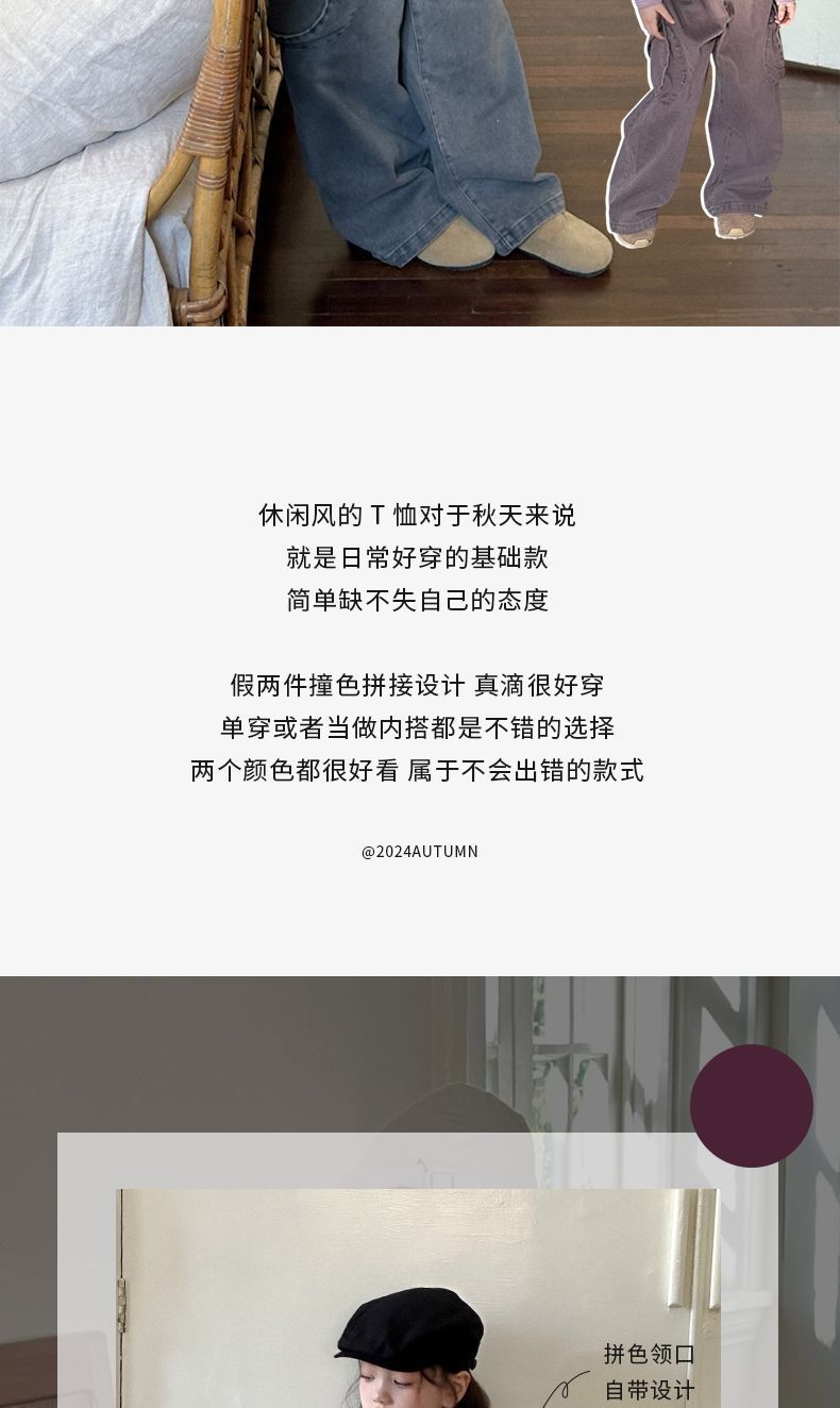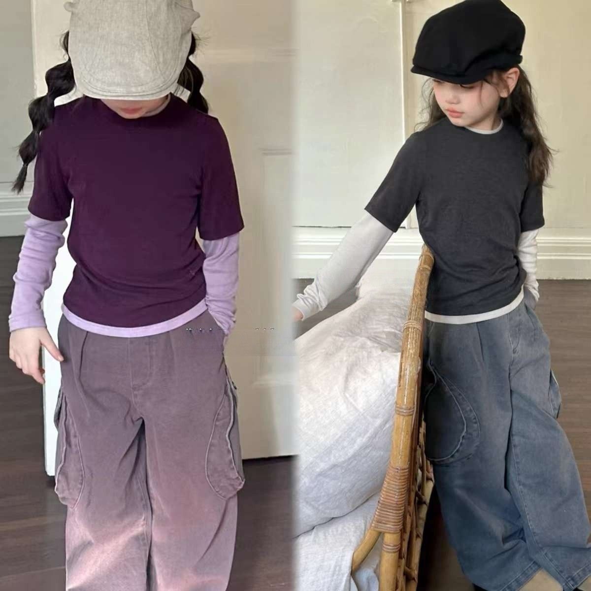 여자 2025 봄, 가을 겉옷 가짜 투피스 긴팔 티셔츠 바닥 셔츠 새로운 이른 봄 여자 슬림 탑스토어 가기
