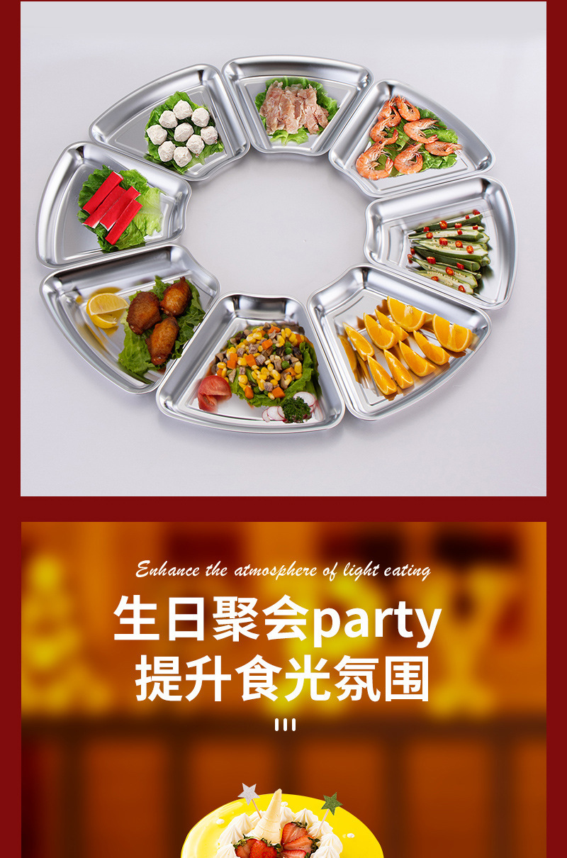 가열식 디너 플레이트, 스테인리스 부채꼴 플레이트, 결혼식 연회 플래터 세트, 회전 플레이트, 연회 플래터, 사다리꼴 플레이트, 전골 플레이트