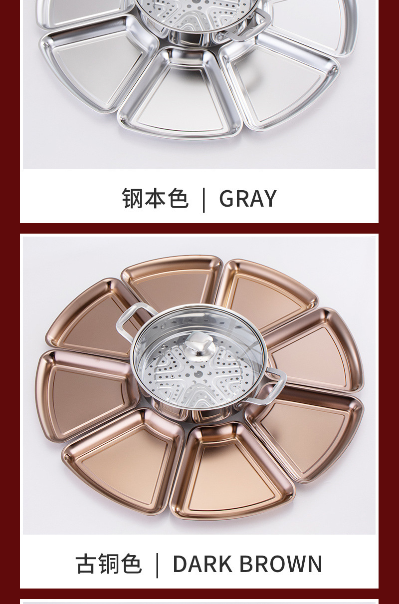가열식 디너 플레이트, 스테인리스 부채꼴 플레이트, 결혼식 연회 플래터 세트, 회전 플레이트, 연회 플래터, 사다리꼴 플레이트, 전골 플레이트스토어 가기