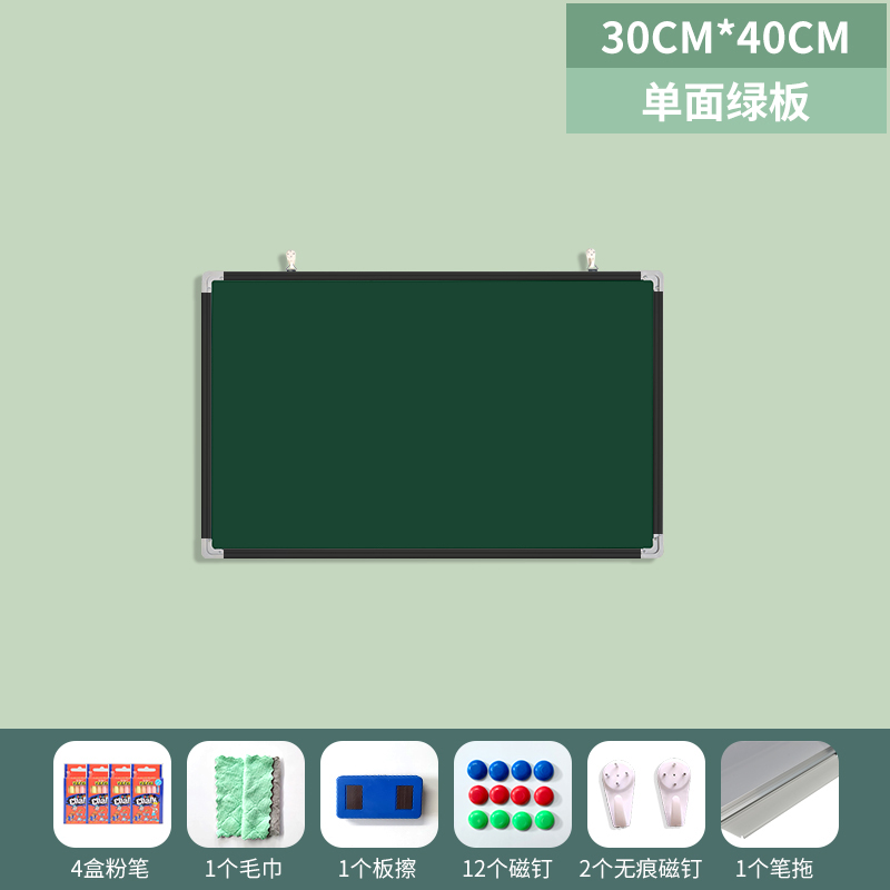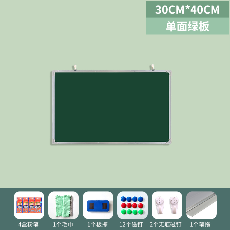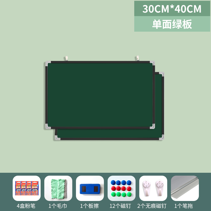• 검정색 프레임 30*40 단면 녹색 보드에는 분필 4상자, 지우개 1개, 자석 12개, 수건 1개, 못 2개가 함께 제공됩니다.
