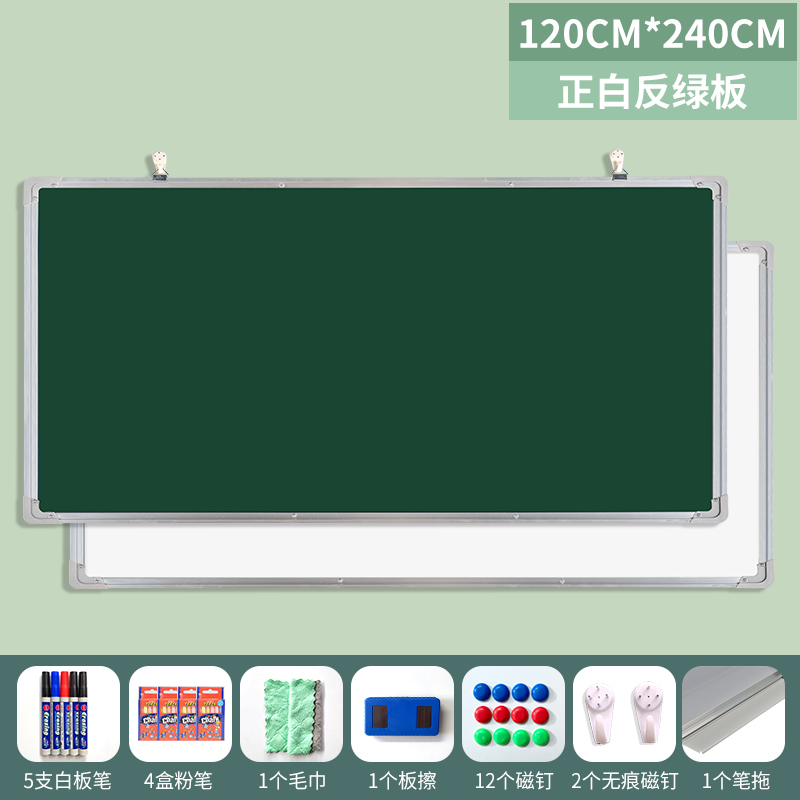 • 120*240 흰색 및 녹색, 무료 화이트보드 마커 5개, 분필 4상자, 지우개 1개, 자석 12개, 수건 1개, 못 2개