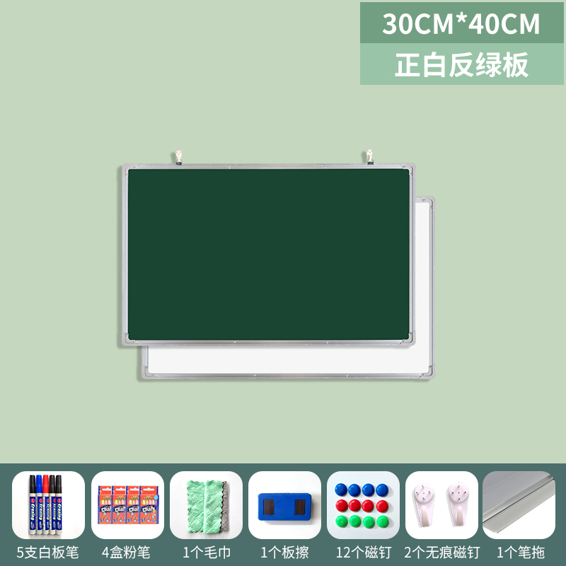 • 블랙 프레임 30*40 양면 그린 보드에는 분필 4박스, 지우개 1개, 자석 12개, 수건 2개가 포함되어 있습니다.