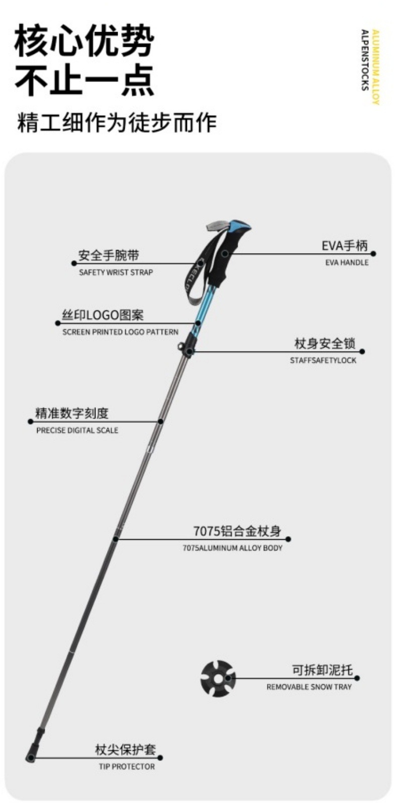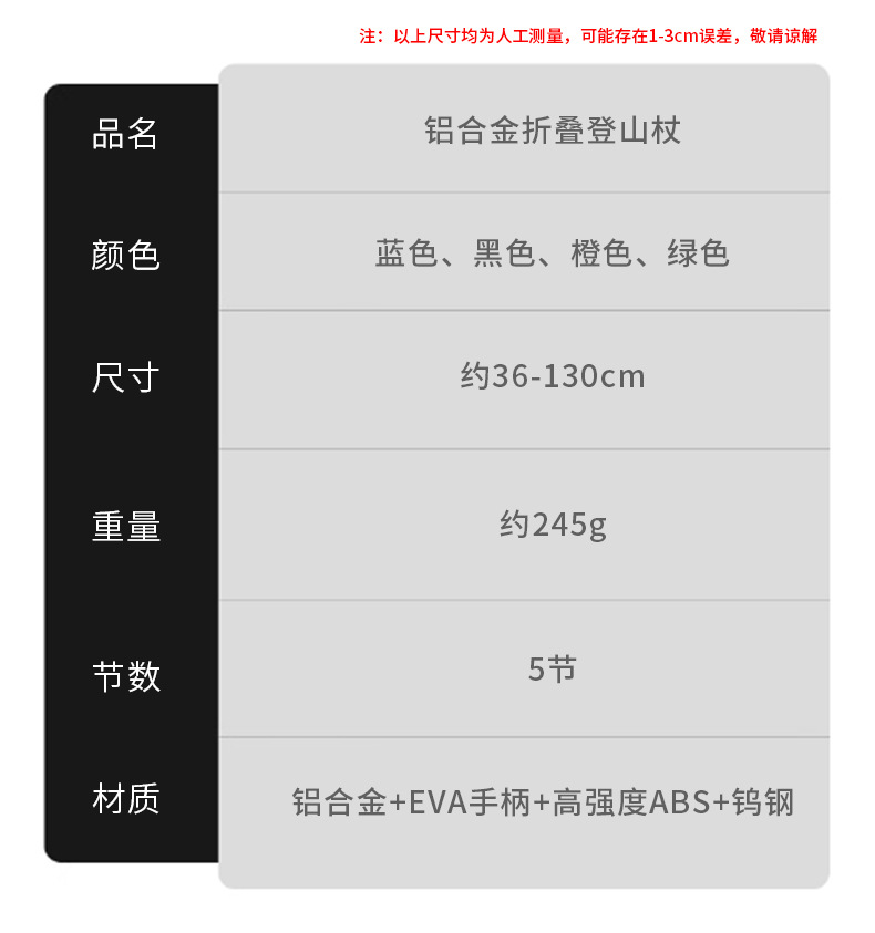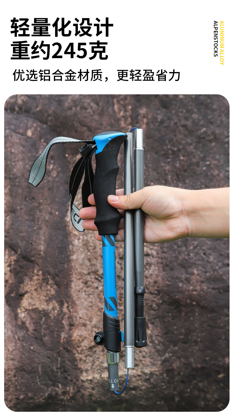 크로스보더 50% off단 등산 스틱 7075 등산용 지팡이 야외 하이킹 등산 장비 미끄럼 방지 경량 접이식 지팡이