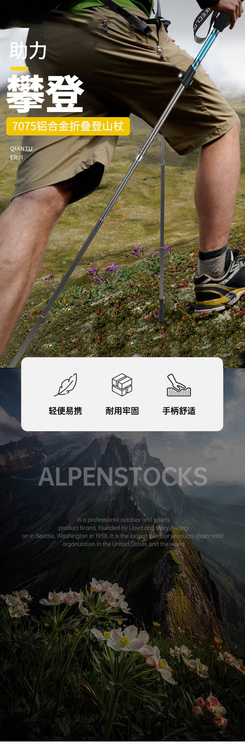 크로스보더 50% off단 등산 스틱 7075 등산용 지팡이 야외 하이킹 등산 장비 미끄럼 방지 경량 접이식 지팡이스토어 가기