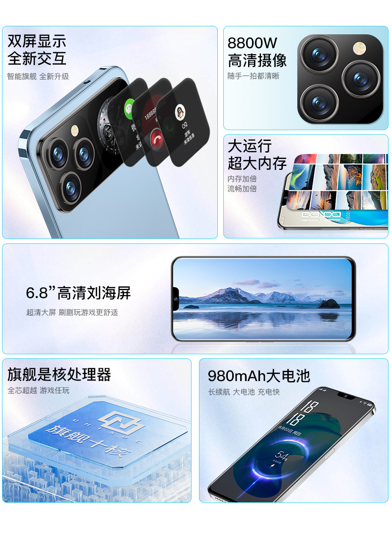 새로운 X17 전체 네트워크 5g 안드로이드 6.8inch 포지티브 및 네거티브 듀얼 스크린 256G 대형 메모리 스마트폰 공장 직접 판매스토어 가기