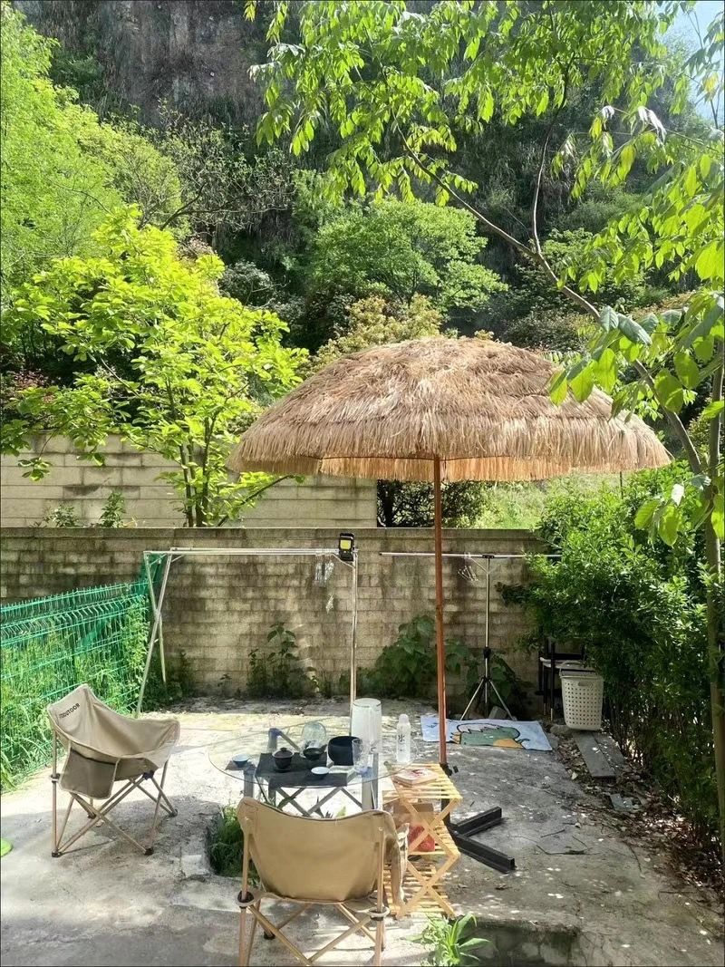 안뜰 사진 발코니 정원 가구 직선 스틱 사진 소품 모조 밀짚 우산 짚 야외 태양 우산 파라솔스토어 가기