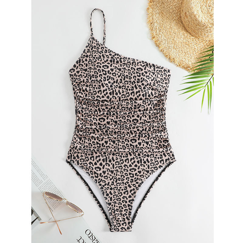 2025 유럽과 미국의 원피스 수영복 여성 섹시한 원 숄더 서스펜더 꽉 끼는 레오파드 프린트 원피스 수영복 여성을위한 대외 무역 새로운 수영복스토어 가기