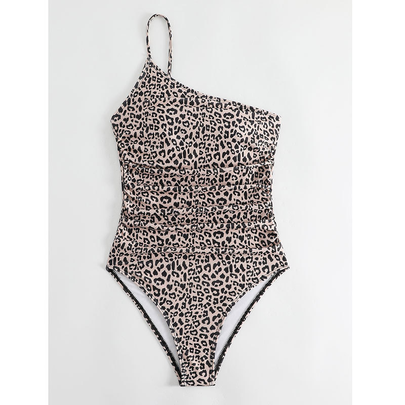 2025 유럽과 미국의 원피스 수영복 여성 섹시한 원 숄더 서스펜더 꽉 끼는 레오파드 프린트 원피스 수영복 여성을위한 대외 무역 새로운 수영복