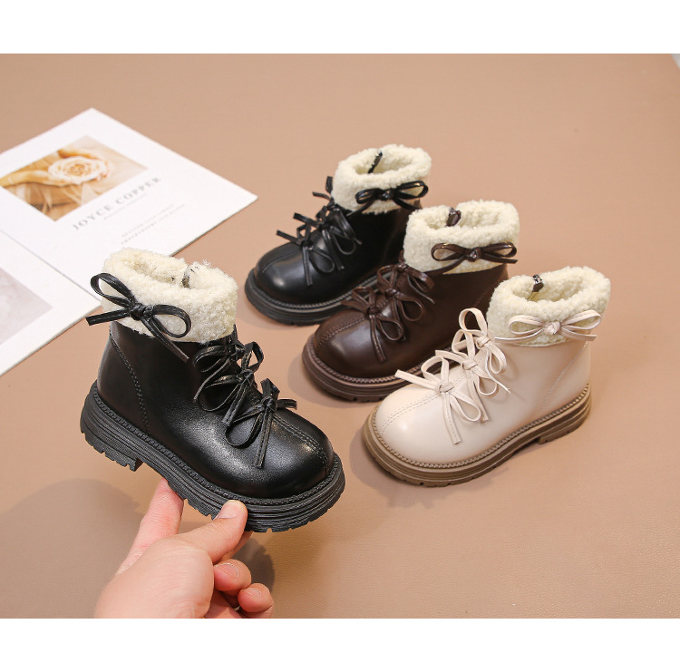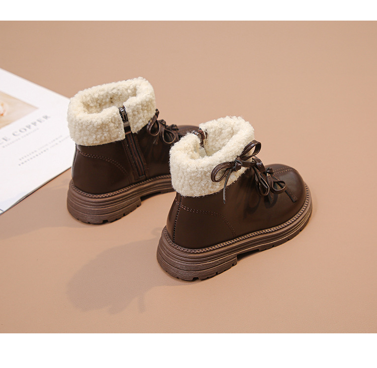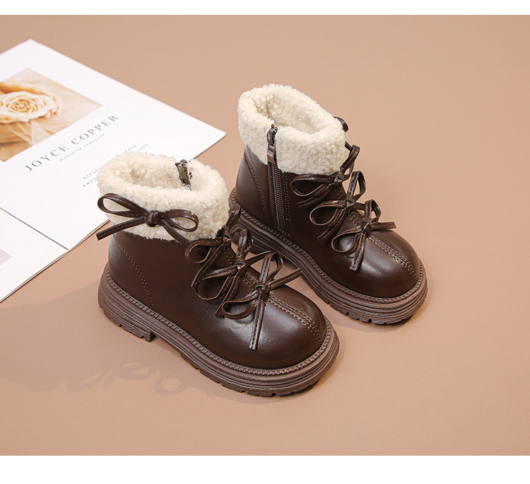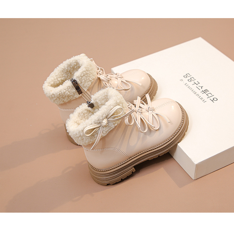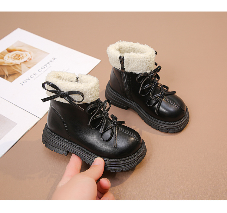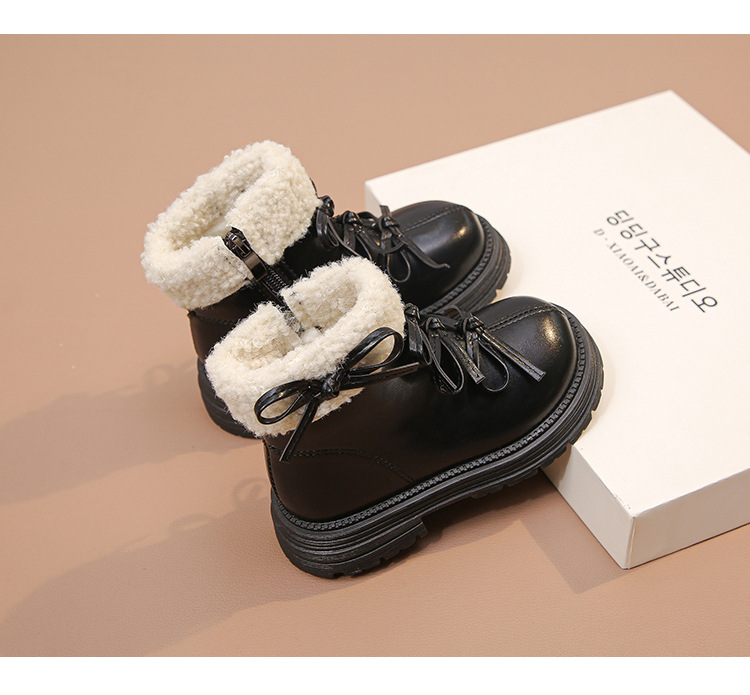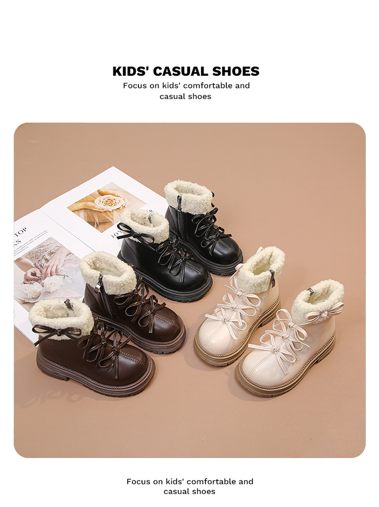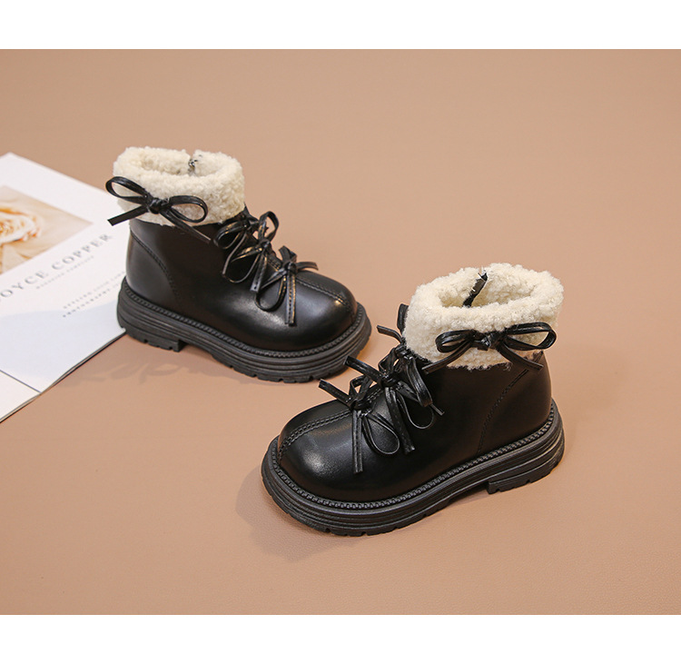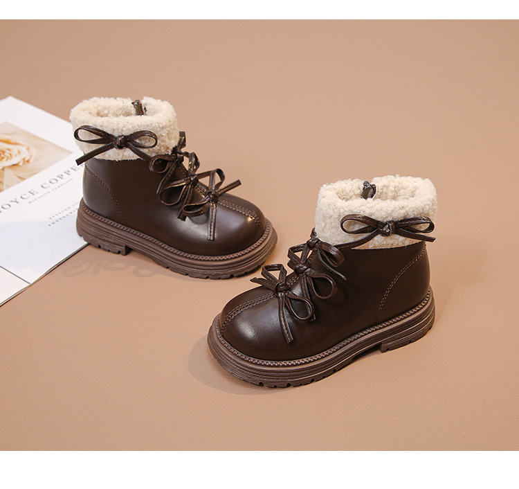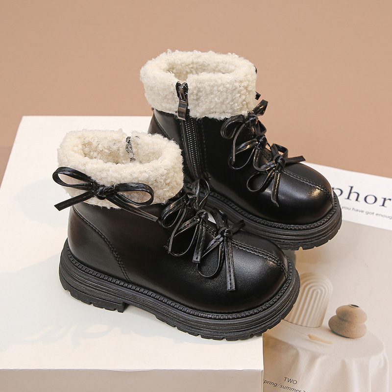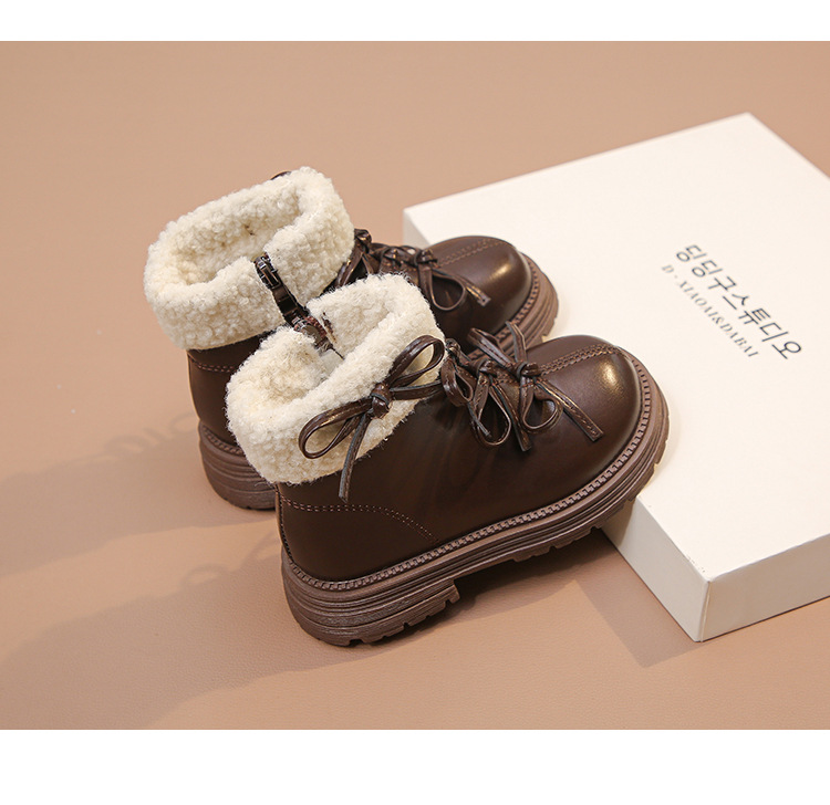 여자 마틴 짧은 부츠 어린이 면화 2025 가을, 겨울 새로운 스노우 부츠 플러스 벨벳 가죽 부츠 겨울 짧은 부츠