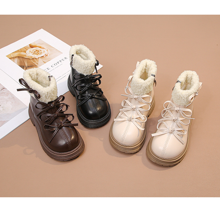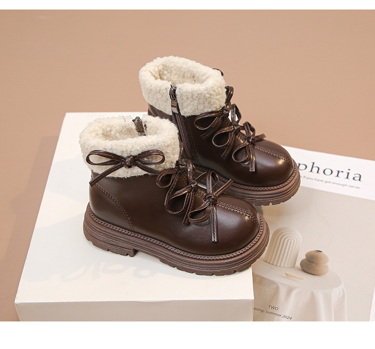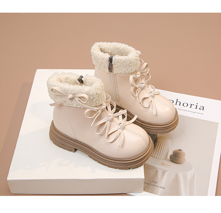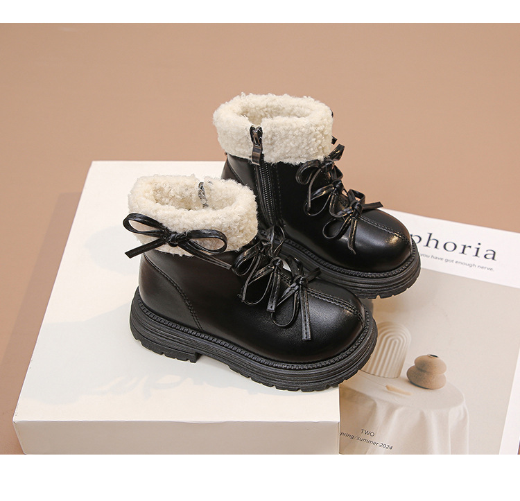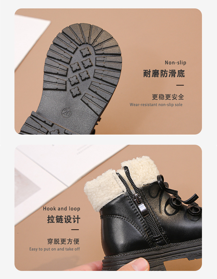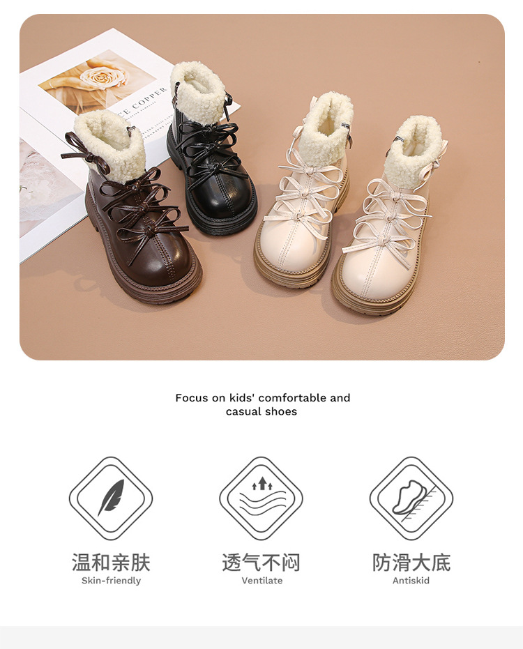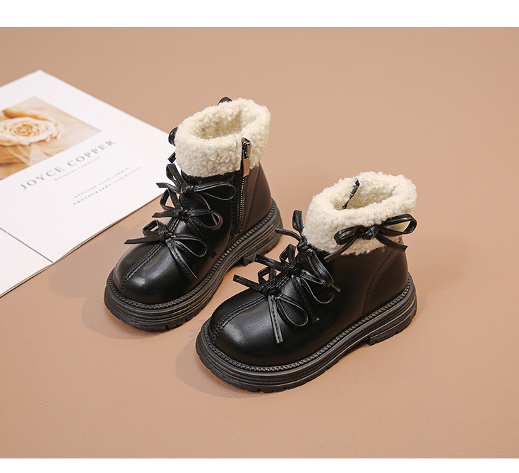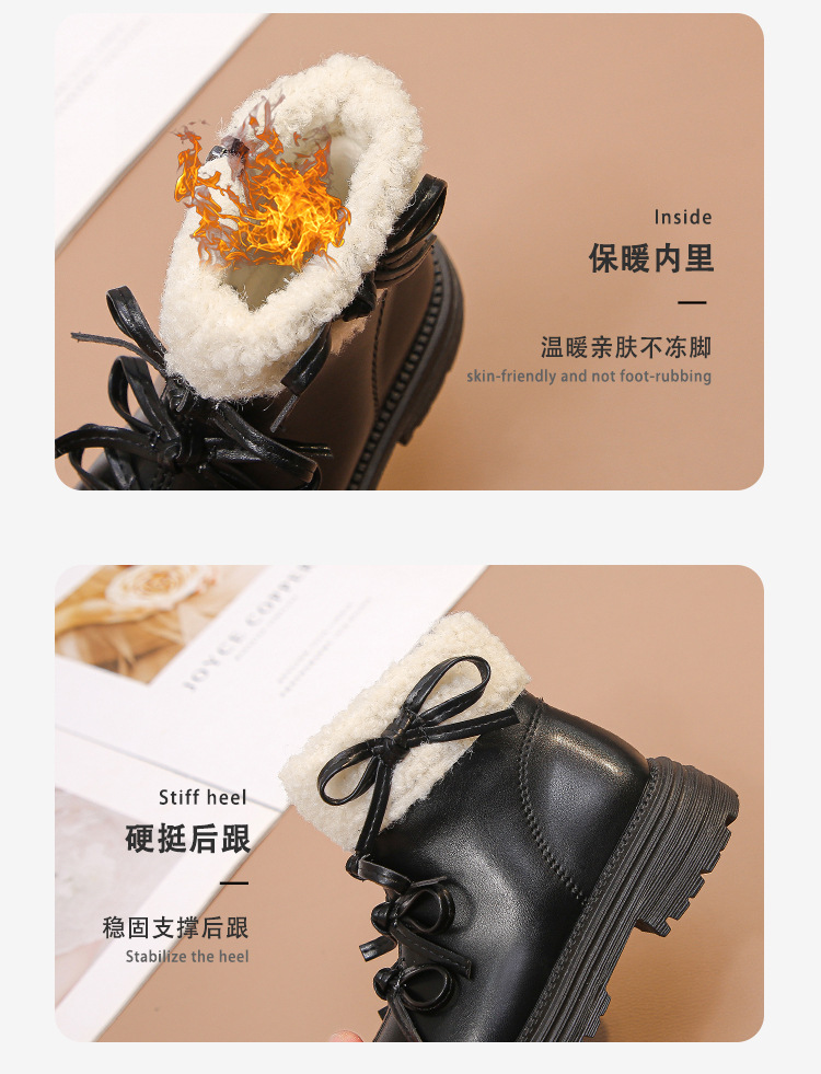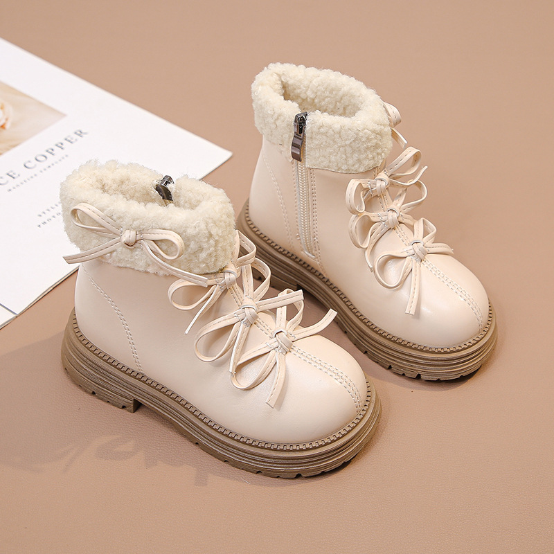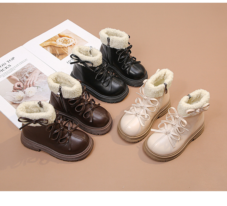 여자 마틴 짧은 부츠 어린이 면화 2025 가을, 겨울 새로운 스노우 부츠 플러스 벨벳 가죽 부츠 겨울 짧은 부츠