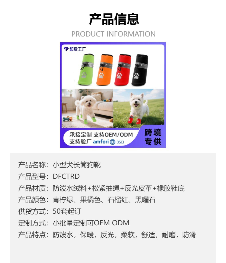 가을 겨울 소형견 부츠는 부드럽고 편안하며 떨어지지 않는 겨울 방수 부드러운 밑창 무소음 따뜻한 개 신발스토어 가기