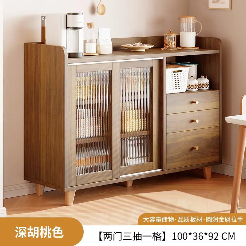 茶水日式餐边客厅柜子一体家用置物实木边柜靠墙储物柜厨房收纳