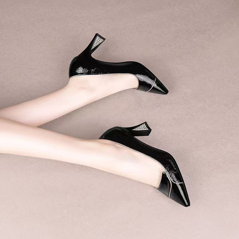 부드러운 가죽 우아한 여성용 뾰족한 발가락 펌프 여성용 미드 힐 2025 봄, 가을 새로운 패션 다용도 작은 굽 여성용 신발스토어 가기