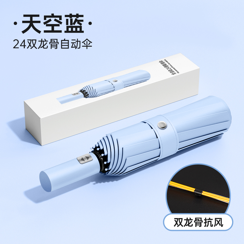 • 24본 [블랙 코팅 2인용 우산] 하늘색/전자동 케이스