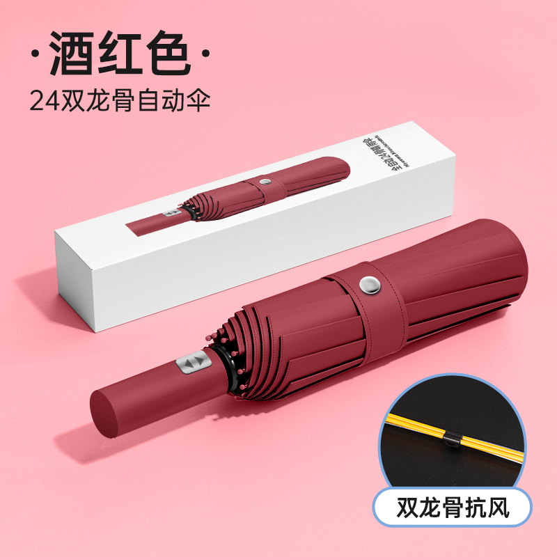 • 24본 [블랙 코팅 2인용 우산] 와인색/완전 자동 우산 케이스 포함
