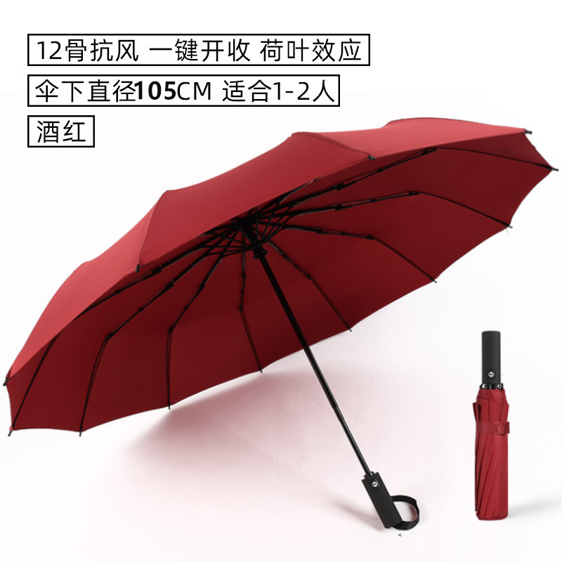 • 12본 고급 [2인용 우산] 와인 레드/완전 자동