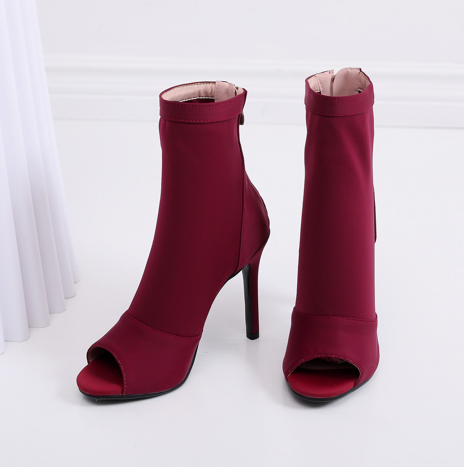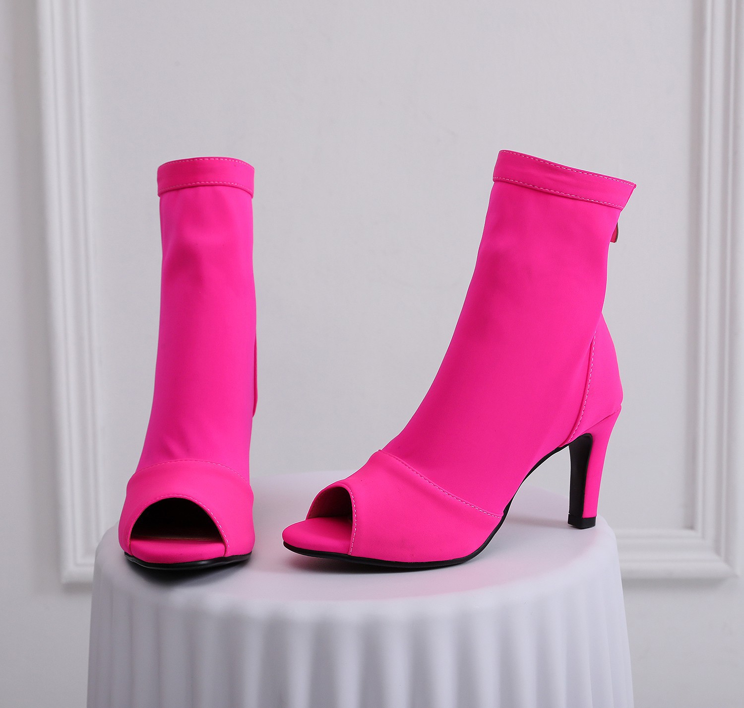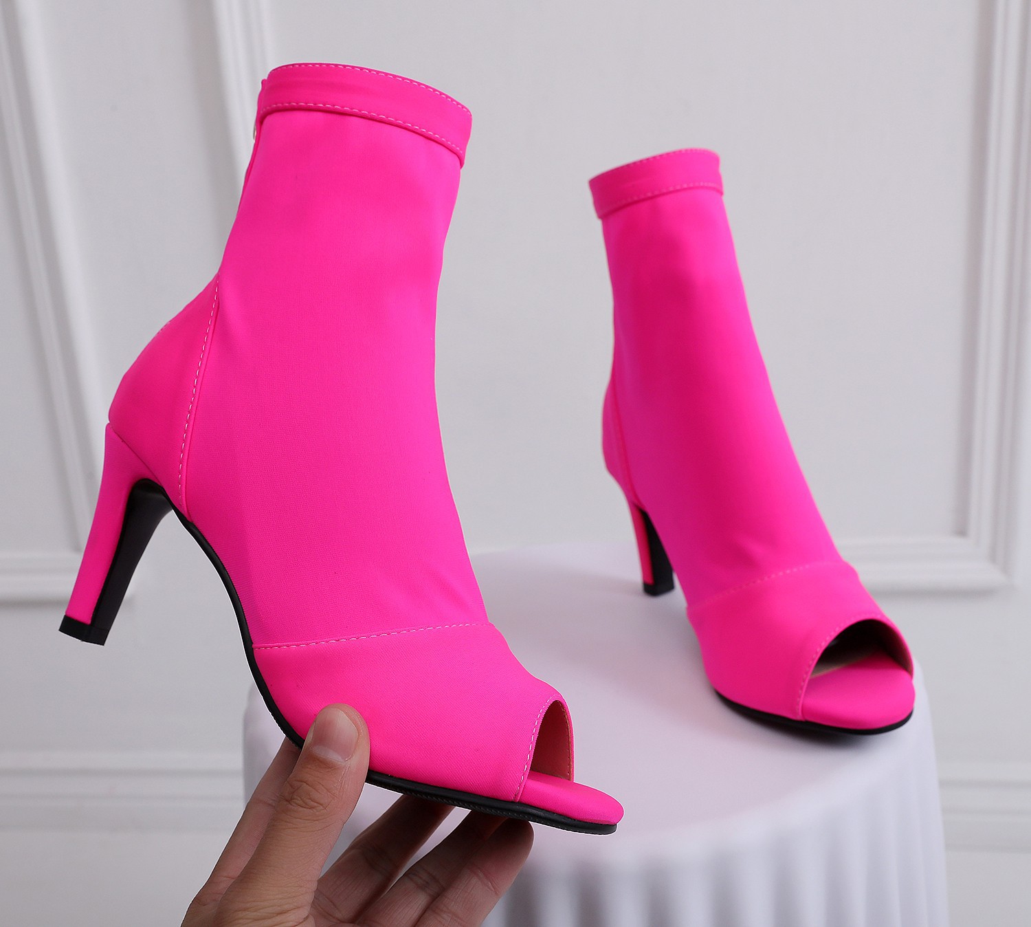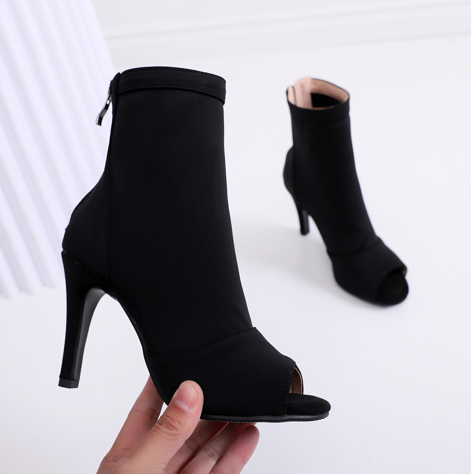 여성을위한 얇은 굽 피쉬 입 샌들 2022 새로운 여름 중공 짧은 부츠 레이스 업 재즈 댄스 댄스 하이힐 플러스 사이즈스토어 가기
