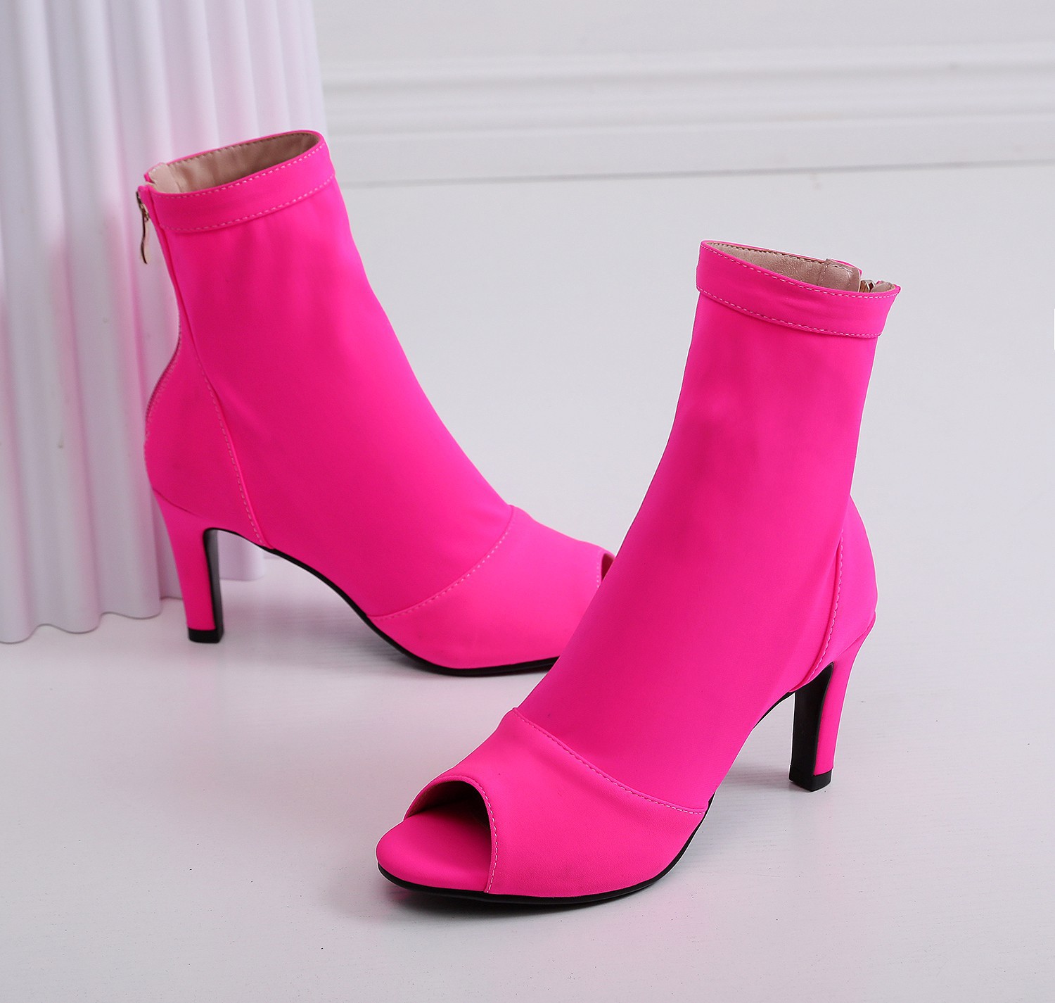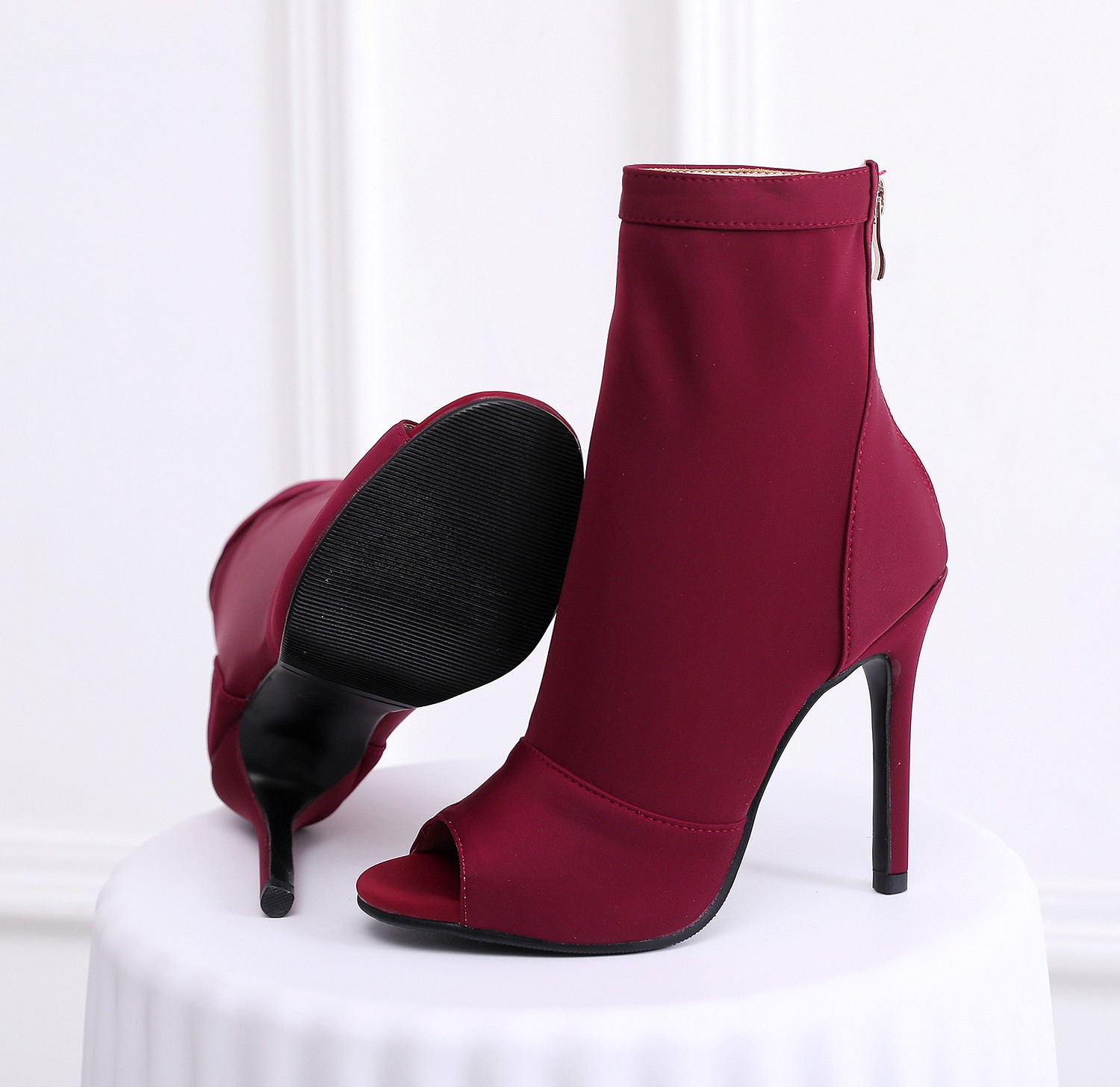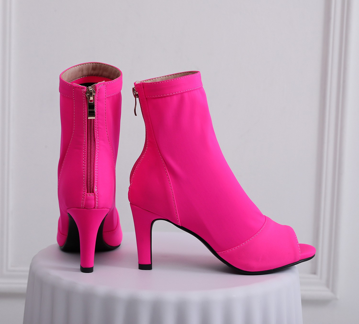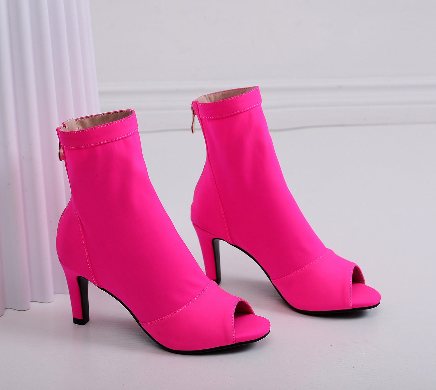 여성을위한 얇은 굽 피쉬 입 샌들 2022 새로운 여름 중공 짧은 부츠 레이스 업 재즈 댄스 댄스 하이힐 플러스 사이즈스토어 가기