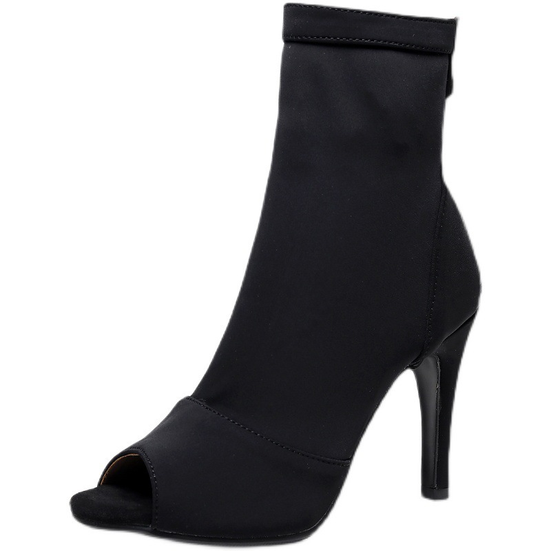 여성을위한 얇은 굽 피쉬 입 샌들 2022 새로운 여름 중공 짧은 부츠 레이스 업 재즈 댄스 댄스 하이힐 플러스 사이즈