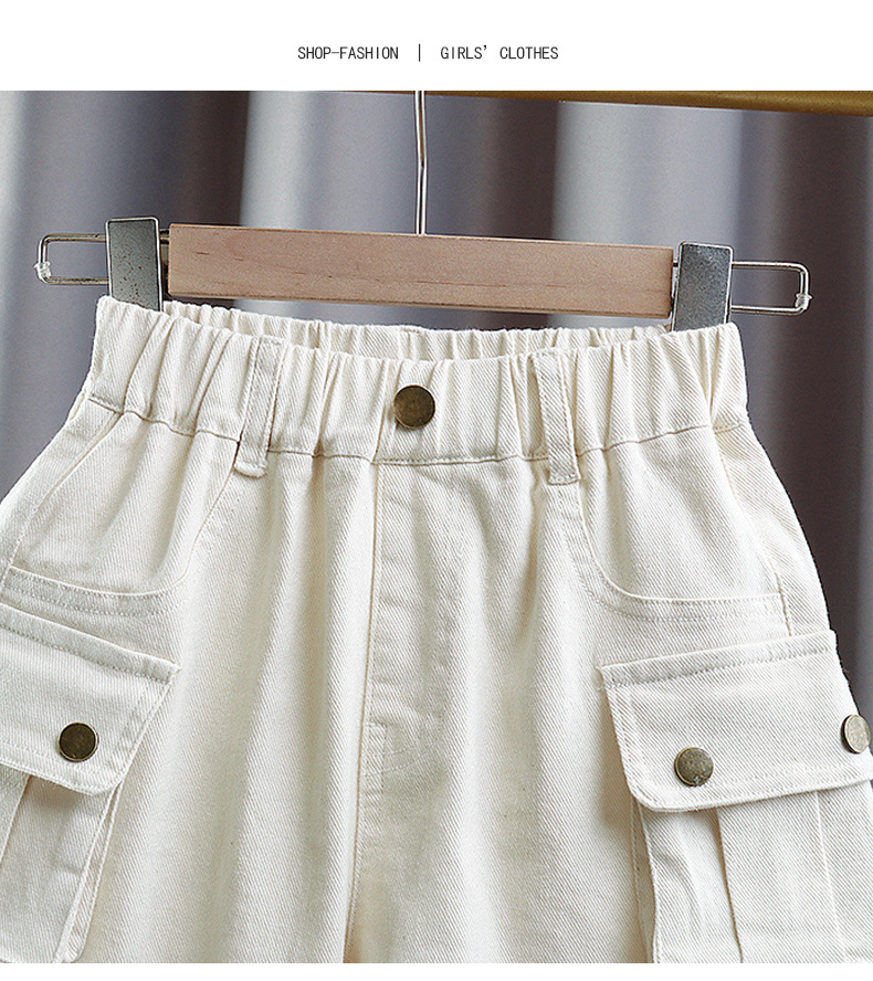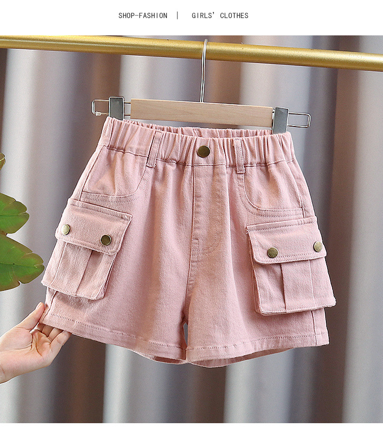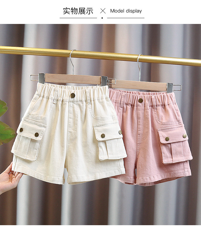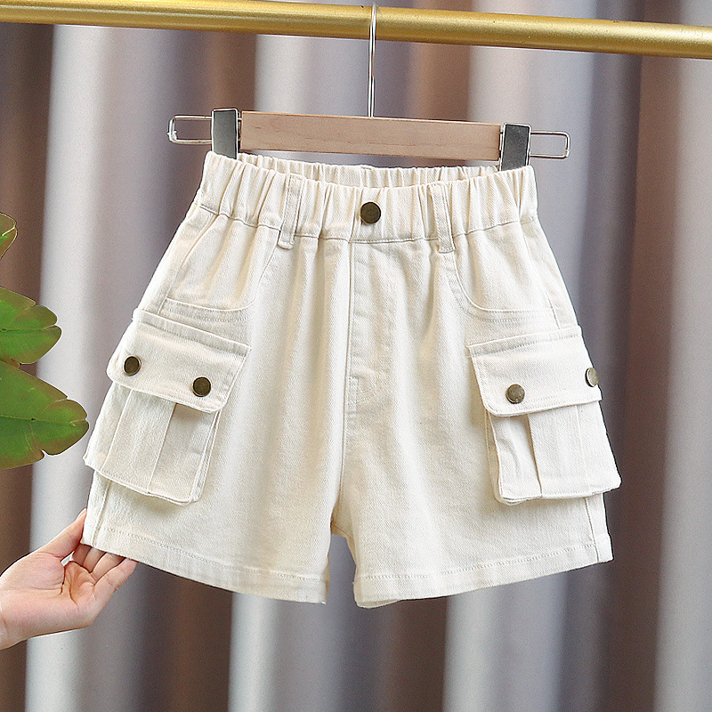 새로운 스타일의 남아 및 여아 여름 반바지, 패셔너블하고 스타일리시한 큰 아동용 아우터 팬츠, 아동용 한국식 다용도 작업복 핫팬츠